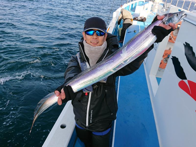 今日も40mラインからスタート。海底付近の反応でポツポツとHITするものの、ちょっと難易度は高目で慣れている方はコンスタントにアタリが出せる感じでしたが、そうでない方は見物状態に・・。じっくりと狙っても良かったですが、今日は浅場のタチウオの様子が良いみたいなので昼前に大移動。到着早々はアタリも遠めでしたが、13時を過ぎると活性も徐々に高まり!40mラインよりサイズも良く、指4・5本級メイン!皆さん良型を追加できました!!