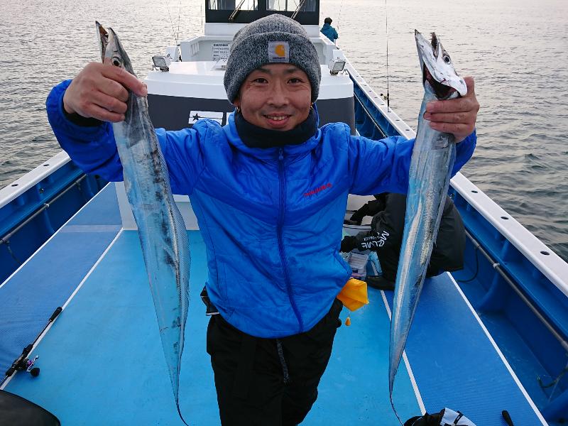 今日は沖目のポイントにハネもあり、雰囲気はバッチリ!じっくりと狙いましたが、バラシも多め・・。2本のみGETで、その後もハネは確認できるもなかなかHITせず・・。見切りをつけ近場のベイト反応で狙っているとポツポツとサワラのアタリが!連発する場面もあり、船内も盛り上がりました!