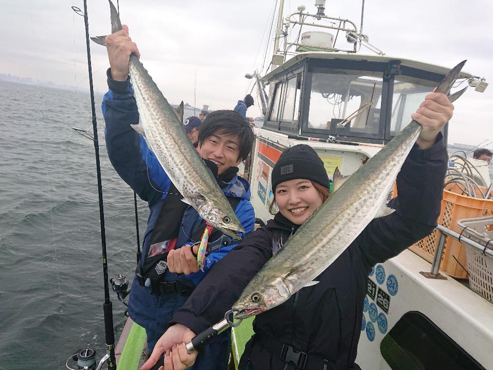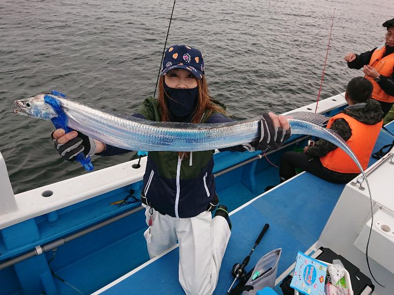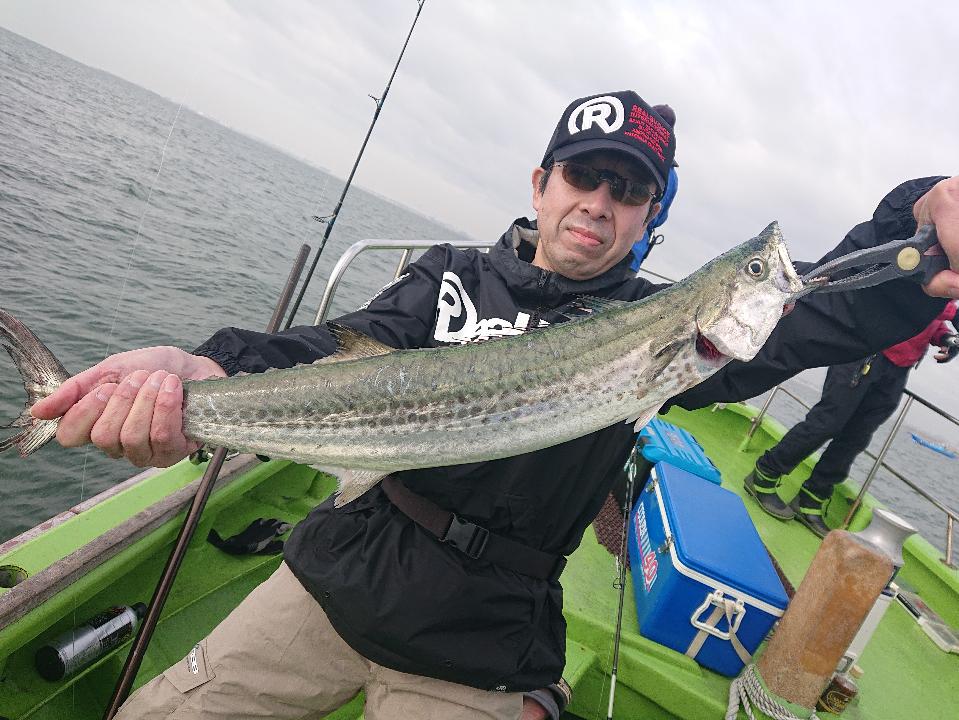 今日は沖目のポイントからスタート。ベイト反応を狙い、早々にサワラを2匹GET!しかし、その後は続かず千葉側の海域に移動。こちらもハネや鳥山などはなく、大き目なベイト反応を狙ってました。するとすぐにタチウオが連発!ジグに変えてもらいバタバタっと短時間で32匹GET!太いサイズなのでお土産分を確保できました!