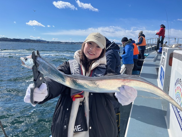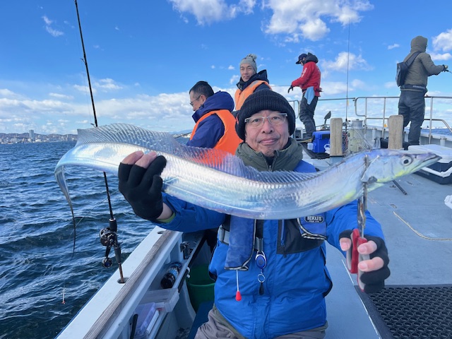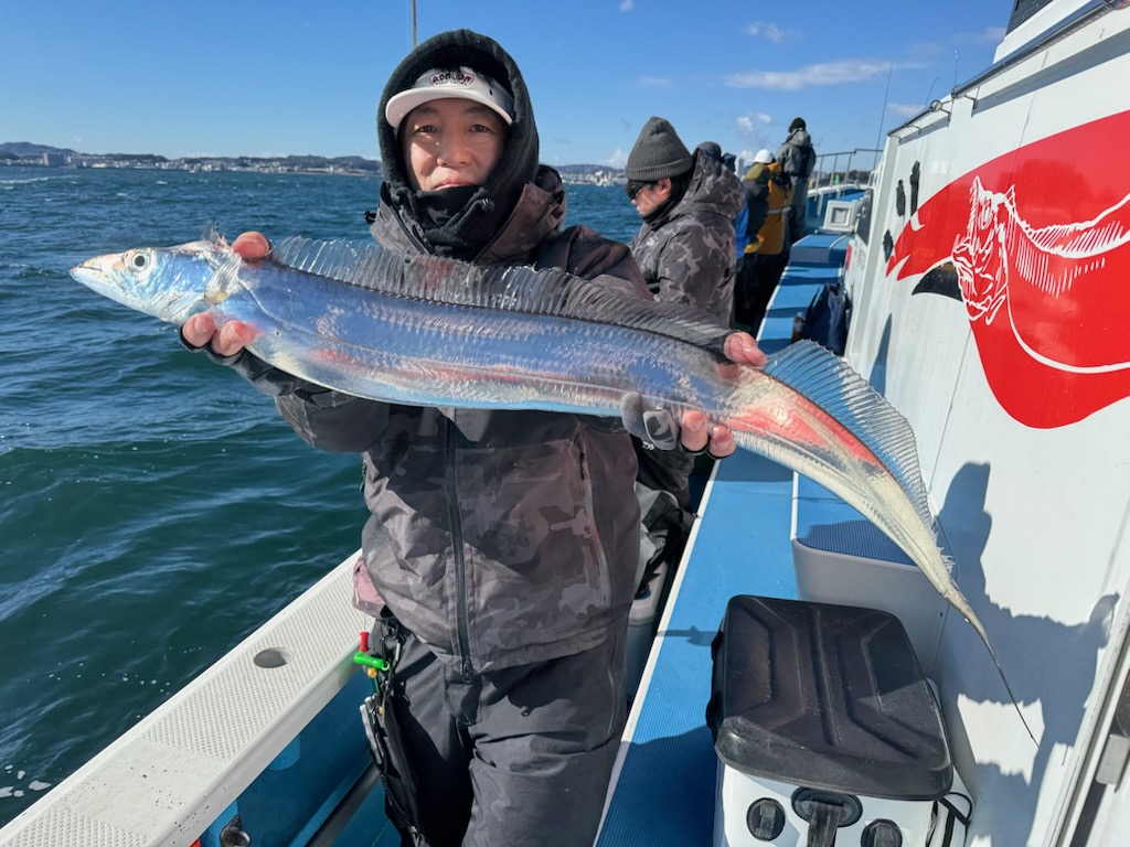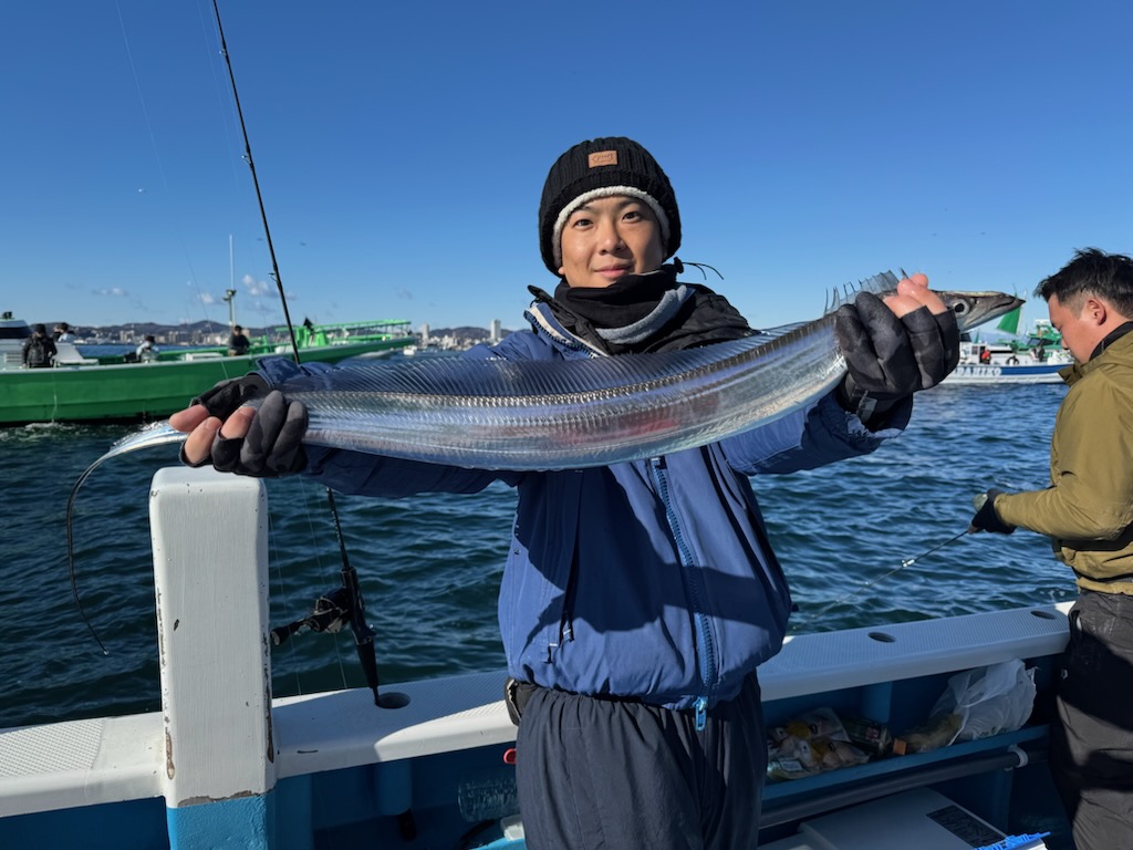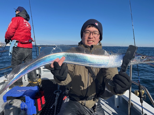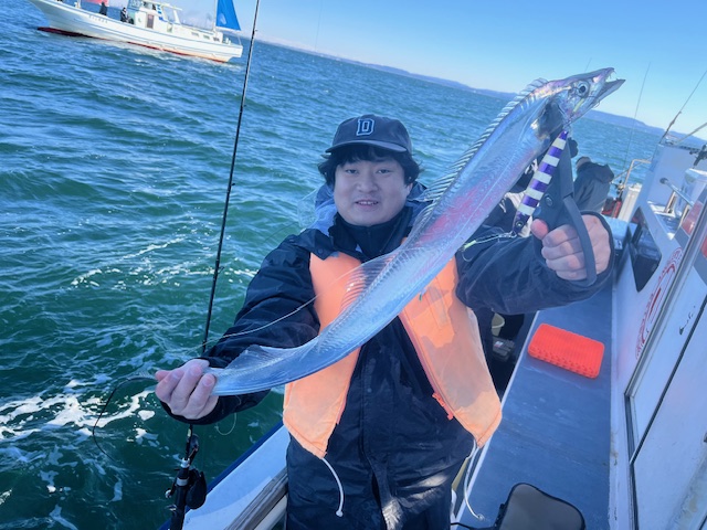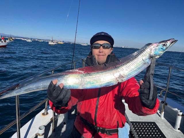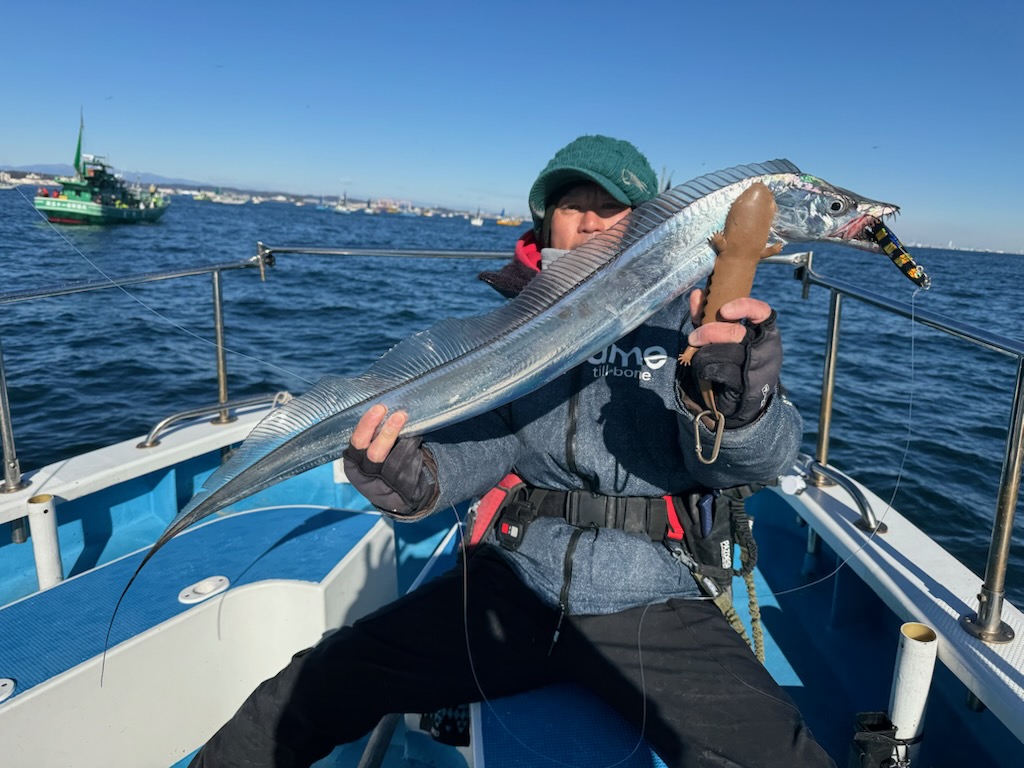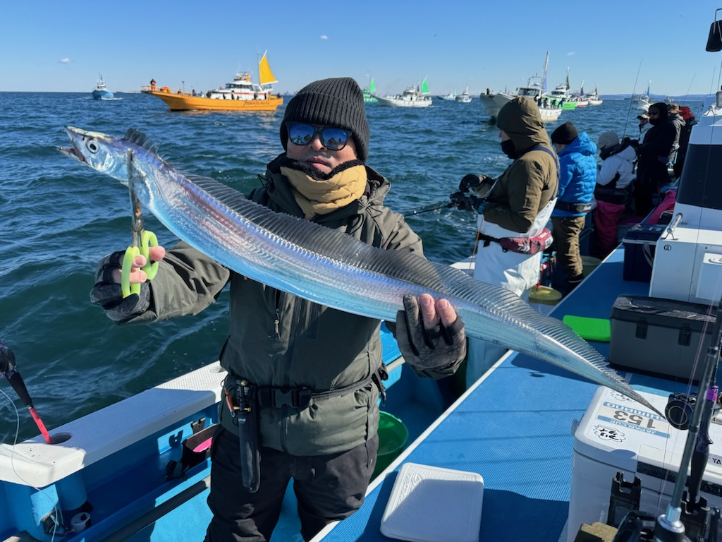 天気 晴れ 水温11.8℃ うす濁り 【タチウオ船】 タチウオ 大きさ 75~121㎝ 数 0~13匹 竿頭 さいたま市 町田 龍希さん タチウオ船は2隻で出船しました。ちょっと風も強めでしたが、猿島沖に着くと波はなく!昨日同様、反応はバッチリと広めに出ておりましたが、ジグに反応良くなくポツリとHITする程度・・。反応をやりかえ、移動を繰り返しちょっとでも活性の高めの群れを探るもどこも同じような感じ・・。下げ潮が流れてきても同じようにテクニカルモードで盛り上がりに欠ける一日になってしまいました・・。