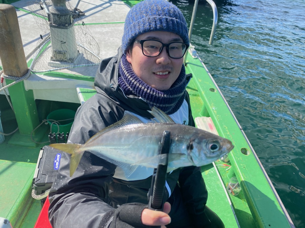 【マアジ船】 マアジ 大きさ 16~28㎝ 数 8~53匹 竿頭 杉並区 西本 裕之さん 今日は川崎沖から捜索しながら南下。2か所ほど型を見れなく、ようやくポツポツとアタリが続く群れに!寒さのせいか、長続きする感じではなく、移動しようも、南の本牧・横浜を狙っている僚船も大苦戦との事で、ポツポツアタリでじっくりと我慢・・。その後は転々と探りながらちょっとづつ貯めていき、大型船の出航でストラクチャー周りに移動。25cm前後の良型もポツポツとHIT!ちょっと延長して数を稼ぎました!バチコンの方は苦戦気味も、貸竿の方でもお土産分は確保となりました!