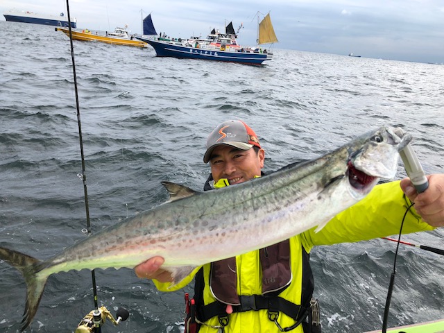 タチウオ船は今日も2隻で出船しました。ともに浅場のポイントからスタート。朝一は活性高めもすぐに落ち着き、細切れ気味の反応を追いかけまわしポツポツと順調にHIT!途中、アタリの遠い時間帯もありましたが、帰り際にはまたポツポツと!3kgほどのサワラも浮上し、後半はナギになり何とかなりました!
