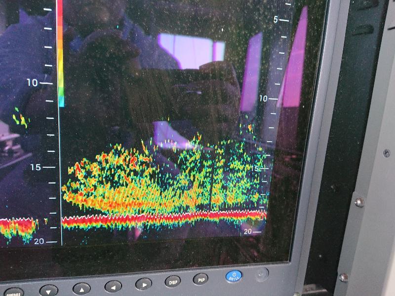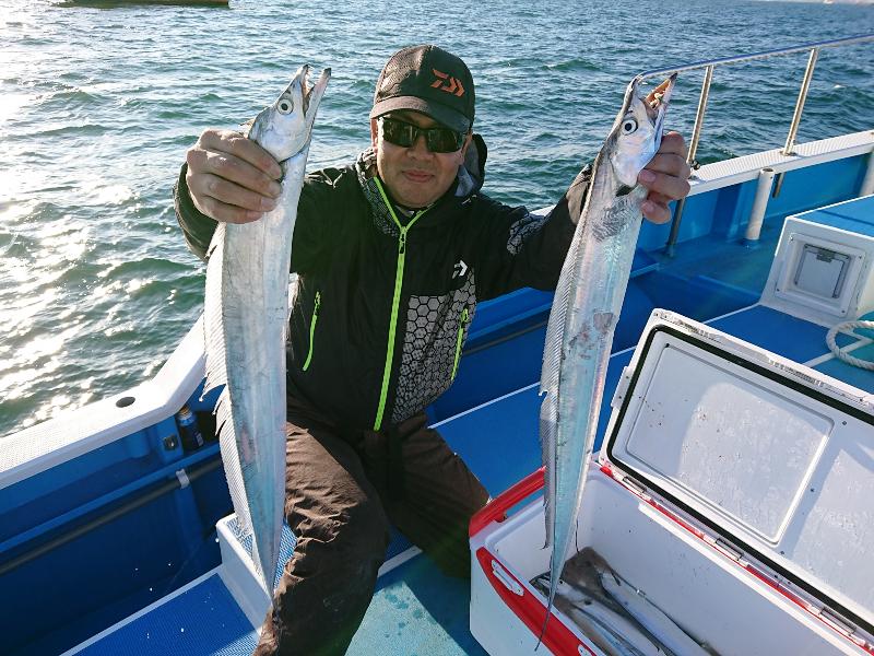 タチウオ船は2隻で出船しました。浅場のポイントから狙うも、反応の割には活性低め・・。なかなか盛り上がらないので40mラインに移動。こちらも型を出す程度で渋く。後半はまた浅場に戻り、活性の高まるタイミングを狙いましたが、活性の低いまま・・。かなりテクニカルな感じで苦戦しました・・。