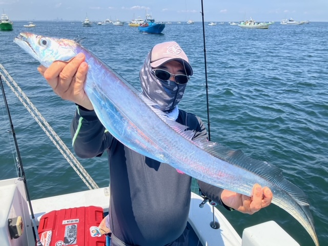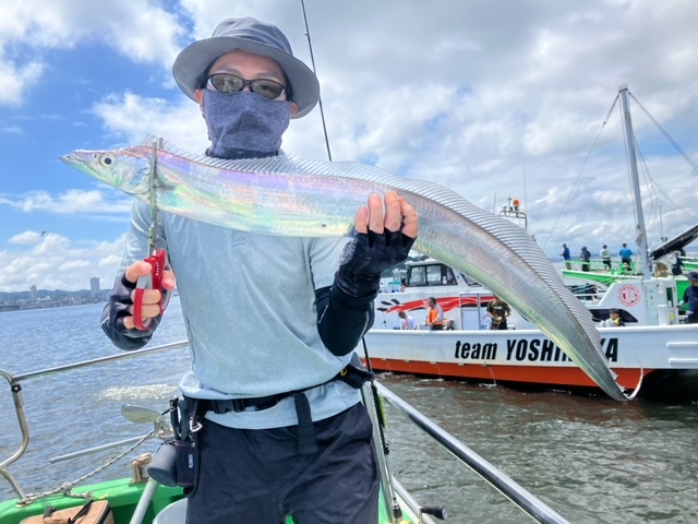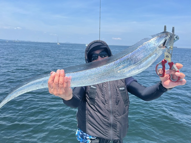 天気 晴れ 水温12.8℃ うす濁り 【タチウオ船】 タチウオ 大きさ 75~124㎝ 数 0~13匹 竿頭 新座市 岸 朋幸さん 今日は走水沖からスタートしました。海底付きのショボ目の反応でしたが、周辺には点在しており、ジグを落とすとテクニカルながらポツポツとHIT。アタリもひと段落してきたタイミングで猿島沖に移動。こちらは一回りサイズも良く、メーターUPもちらほらと!最大は124cmのドラゴンも浮上!相変わらずのテクニカルモードの中でしたが楽しめました!
