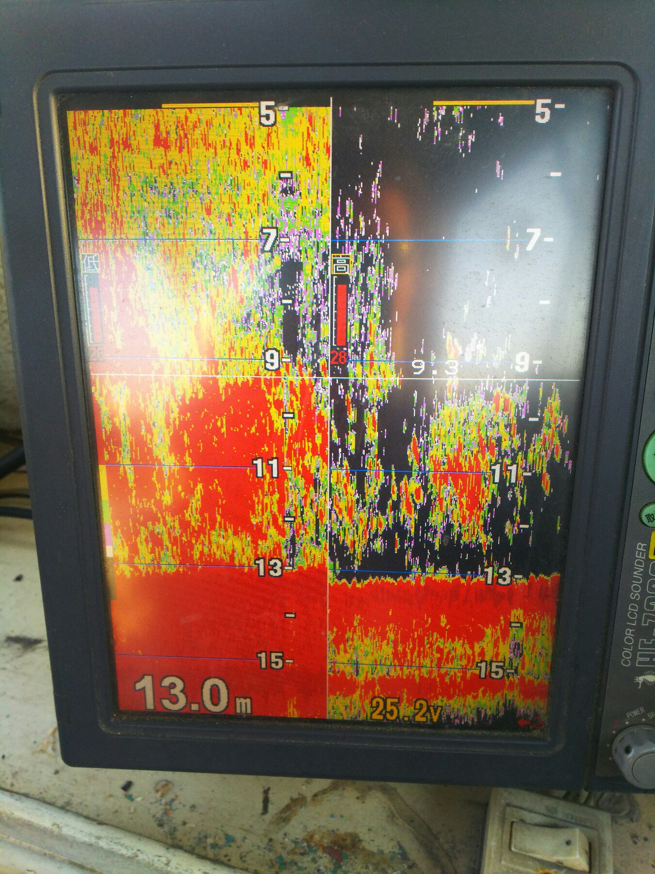 久しぶりの出船なので上手から捜索も反応乏しく南下。サバの反応はすぐ見れバタバタ開始!いくらか見れたのでウルメの反応もと思い捜索しましたが見つからず、当てる反応はすべてサバでした・・。