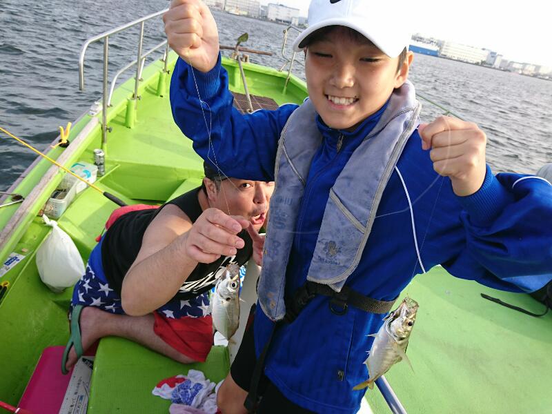 午後も初チャレンジのお客様も多く、半数以上が貸し竿のお客様でした!上乗りがレクチャーをしながら釣りを開始。早々に反応もしっかりと出ており、慣れたお客様はポツポツと順調にHIT!初心者の方もコツをつかんだ方からポツポツとアジをGET!前半はイシモチの方が優勢の流しもあり、アジは反応の割にはポツポツ程度。しかし、17時頃になると一気に活性がUP!日没まで入れ食い状態が続き、初挑戦の方々もダブル連発で楽しんでいただけました!!
