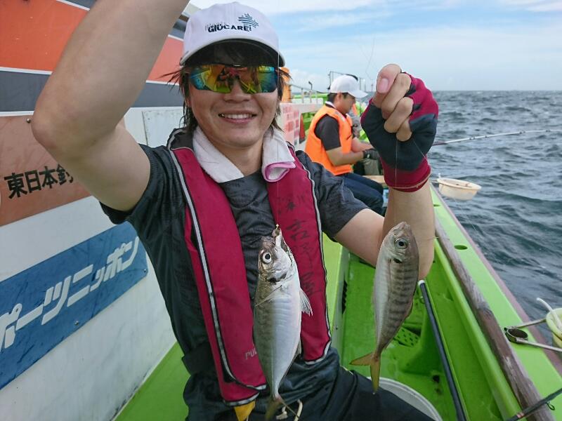 マアジ船も2隻で出船しました。南西の風がちょっと強めに吹いており、ちょっとごちゃごちゃした海況でしたが、アジの活性は高め!25cmほどの良型のアジ主体に入れ食いに近いアタリっぷり!慣れた方はダブル・トリプルと続いてくれました!後半になると子サバの群れが回ってきてアジの活性もダウン・・。後半は苦戦気味な展開も、良型主体なのでクーラーも重たそうでした!!