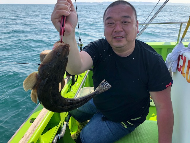 マゴチ船は海堡周辺の浅場でじっくりと狙いました。連発するような派手なアタリっぷりはないものの、流し変えのたびに本命マゴチのあたりはポツポツと順調な展開!ただ、今日みたいにナギの日はイカやフグのアタリも多く、今日はサイマキのロスが多かったです。イカもスミイカなら良いのですが、シリヤケイカが多め・・。