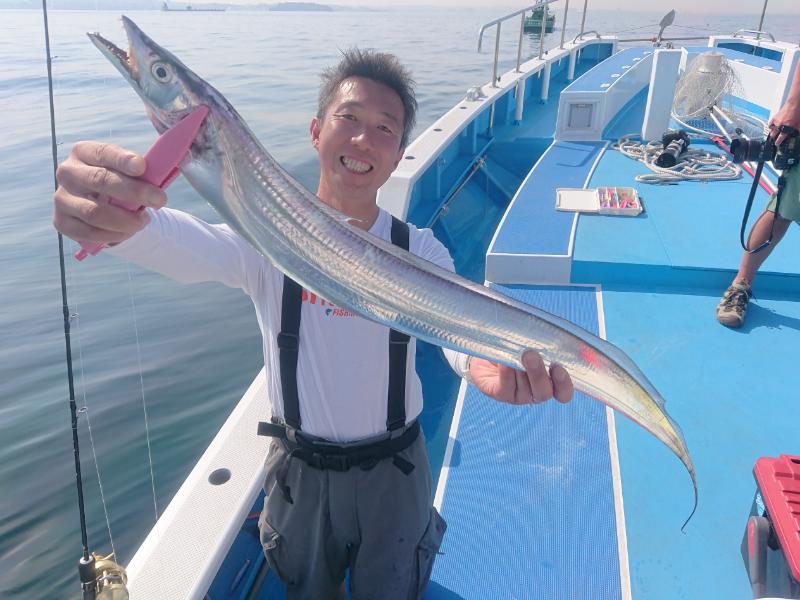 今日は海堡周辺でサバ狙いからスタート。群れの移動が速いみたいで、反応に乗せても2・3人HITするも後が続かず、反応に乗せかえちょっと移動の多い感じ。1kgほどのマダイも浮上しましたが、群れも散り始めたので70mラインまで移動し、タチウオ狙いに変更。こちらはバッチリと反応が出ておりましたが、地味にポツポツといった感じ。明日も深場のポイントで狙う予定なので150gのジグもご用意ください!