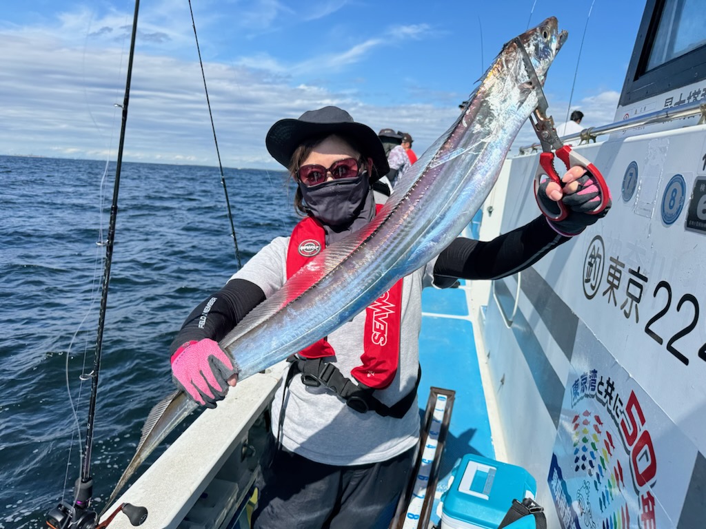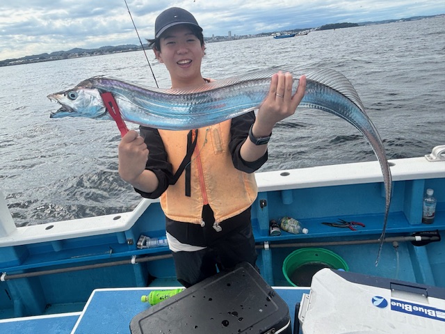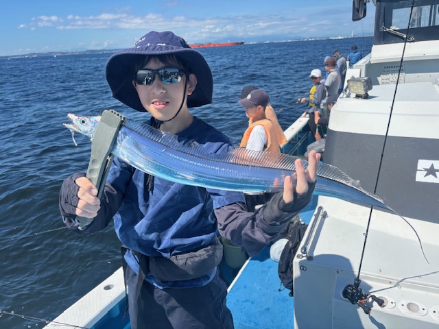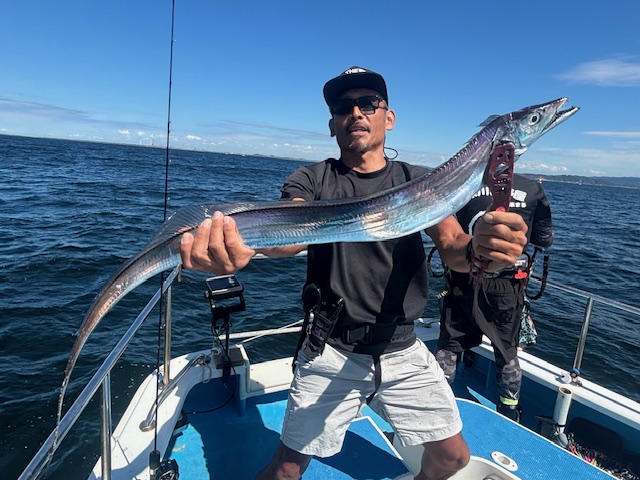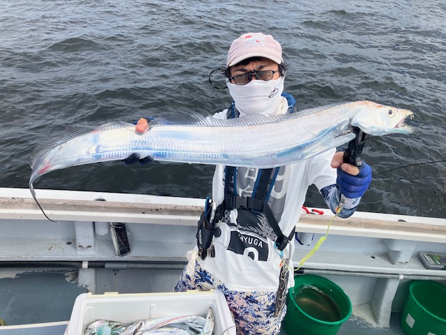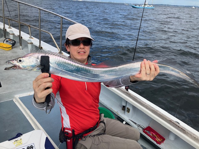 天気 雲→晴 水温25.8℃ うす濁り 【タチウオ船】 タチウオ 大きさ 70~115㎝ 数 1~26匹 竿頭 足立区 大竹 和也さん 今日は3隻で出船しました。ともに富津沖の浅場のポイントから開始。反応はあるのですが細切れ状態。。、ジグを落としても数匹HITする程度でそれほどの活性はなく、転々と小移動を繰り返し地味に貯めていきました。上げ潮に変わっても好転する気配もなく、走水沖に移動。こちらは反応の割にはポツポツ程度も、帰り際まで順調にアタリが続いてくれました!