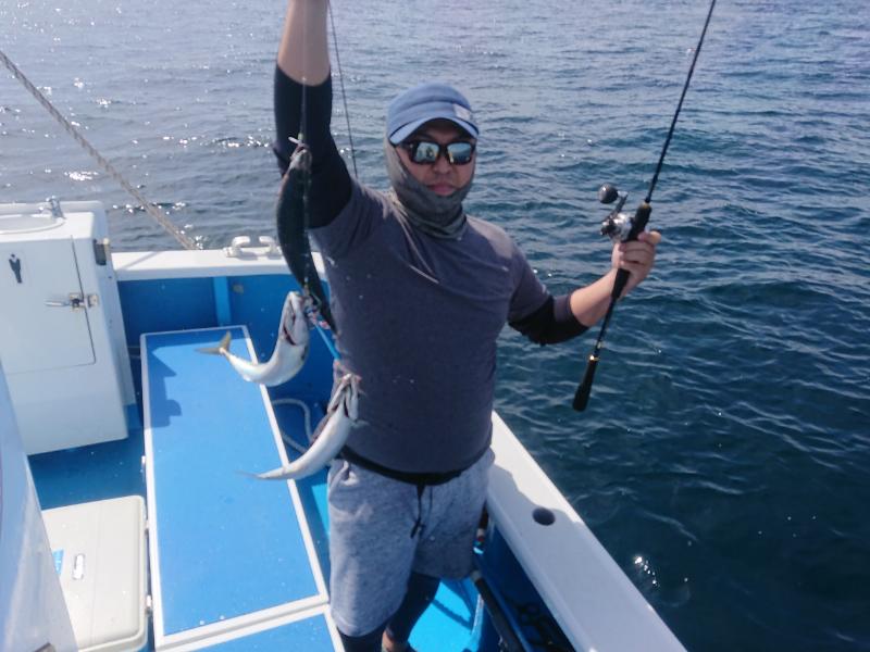 ジギング五目船は今日も久里浜沖周辺からスタート。30~40m付近に反応があり、朝一はウルメイワシが好調にHIT!しかし、その後はサバの大群に占拠され、サバの入れ食い状態に。サバはお腹一杯になったので、タチウオ狙いに反応を捜索するも、なかなか反応を見つけられず・・。というか、サバの反応が多すぎてタチウオの反応がなかなか見つからない感じで、今日は帰り際までサバ祭りでした・・。