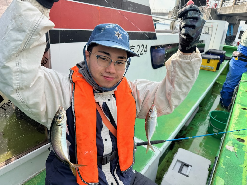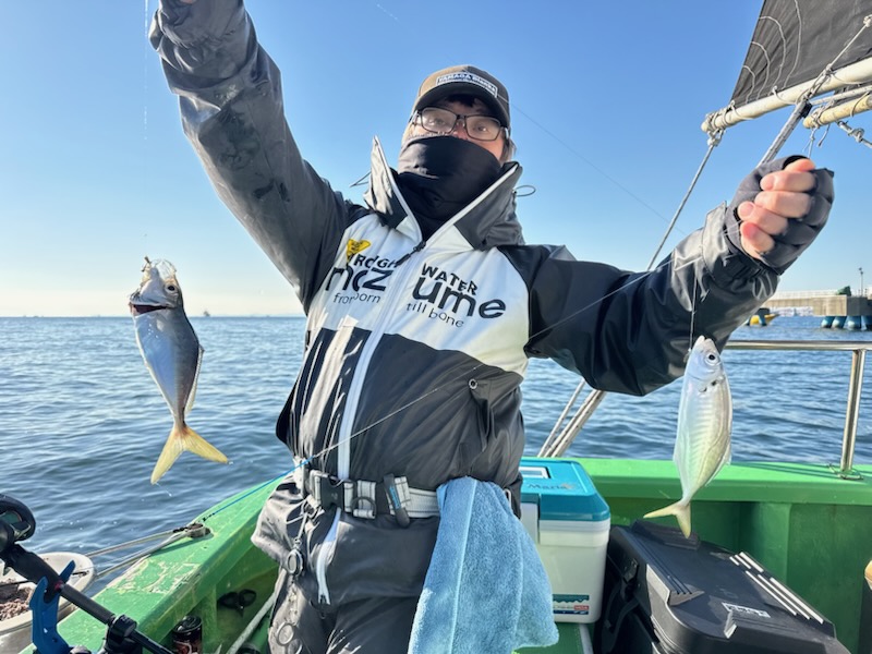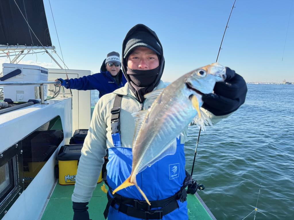 【マアジ船】 マアジ 大きさ 16~34㎝ 数 22~80匹 竿頭 板橋区 和田 勘太郎さん 今日も扇島沖周辺のポイントからスタート。転々とポイントを狙うも、どこも20cm以下の小ぶりが優勢な感じ・・。移動を繰り返しようやくサイズの良いポイントに!じっくりと狙っていると30cmを超える良型もポツポツHIT!帰り際まで好調に続いてくれました!