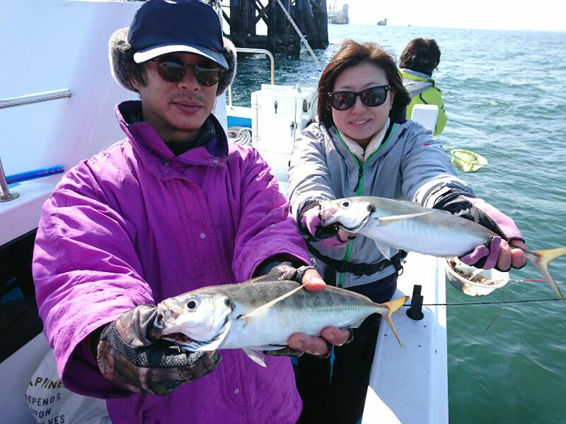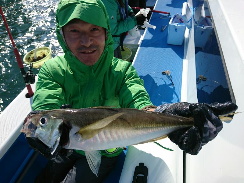 今日もマアジ船は朝から活発な反応に遭遇!20~25cm級のコロコロ太ったアジを中心に入れ食いに近いアタリっぷり!サビキ仕掛けでは9本針にパーフェクトも連発!慣れない方でも順調に数を伸ばしていきました!途中、中だるみする時間帯もありましたが、新たな群れが入ってくると更に活性もUP!>30cmを超える良型もまじり最大は38cm!他に良型のトロサバも掛かってきて、船酔いでダウンの方以外は皆さんクーラー満タンになってました!!