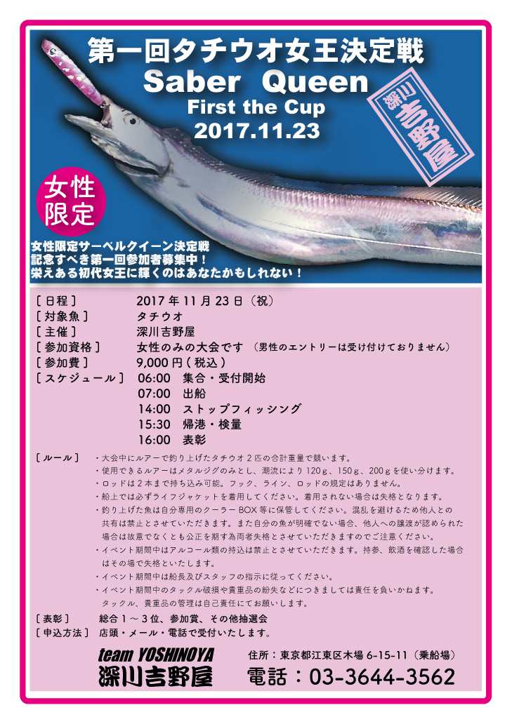 ・イベント期間中のタックル破損や貴重品の紛失などにつきましては責任を負いかねます。タックル、貴重品の管理は自己責任にてお願いします。