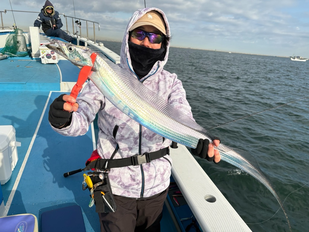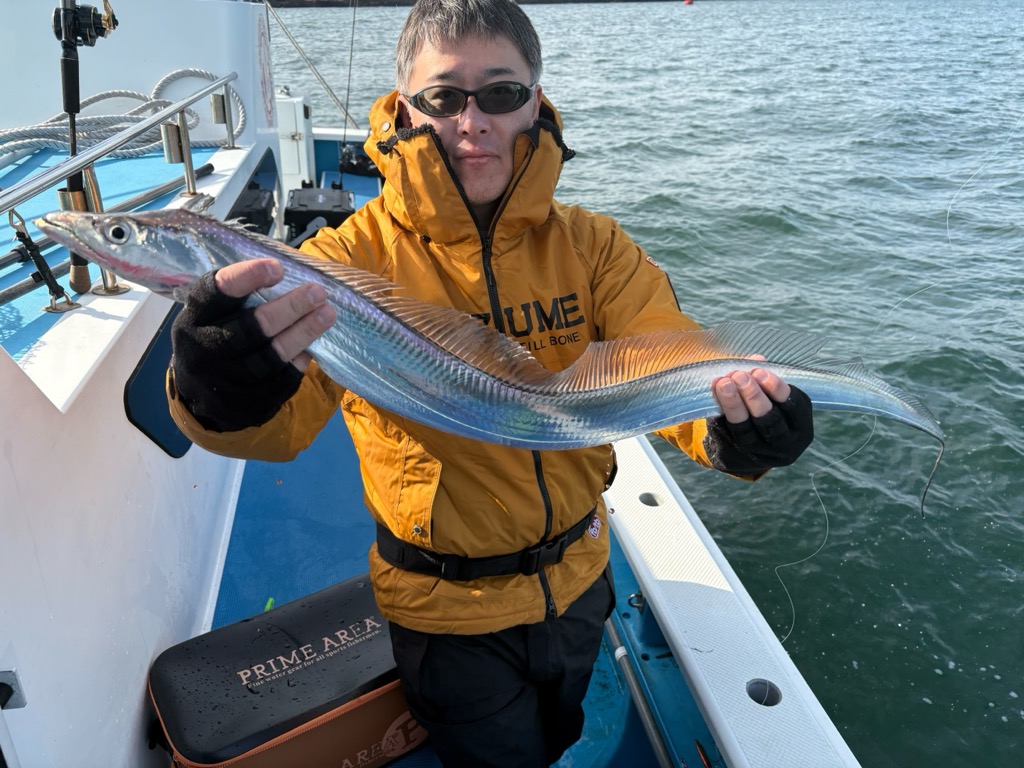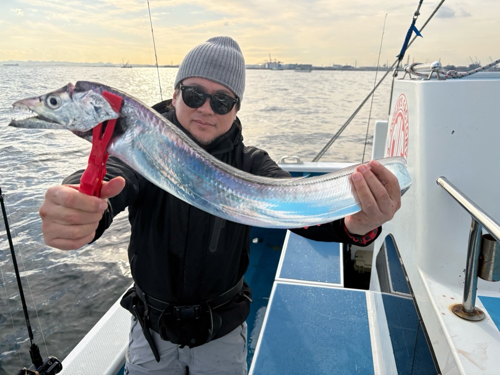 天気 晴れ 水温15.8℃ うす濁り 【タチウオ船】 タチウオ 大きさ 80~118㎝ 数 4~8匹 竿頭 秦野市 進藤 貴史さん 今日は湾奥の千葉側のポイントから捜索。サワラのようにベイトにまとわりつく反応を狙い、どうにかポツポツとHIT。サイズは良いのでじっくりと構えるも、なかなか活性も高まらないので昼過ぎに西側に移動。こちらはしっかりとした反応がありましたが、真っ赤に固まっている感じ・・。超テクニカルモードでアタリを出すのがやっとで、帰り際まで盛り上がる事はありませんでした・・。 反応はバッチリと出ているので、何かの拍子に活性もUPしてくれることを期待しましょう!