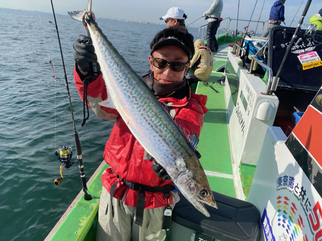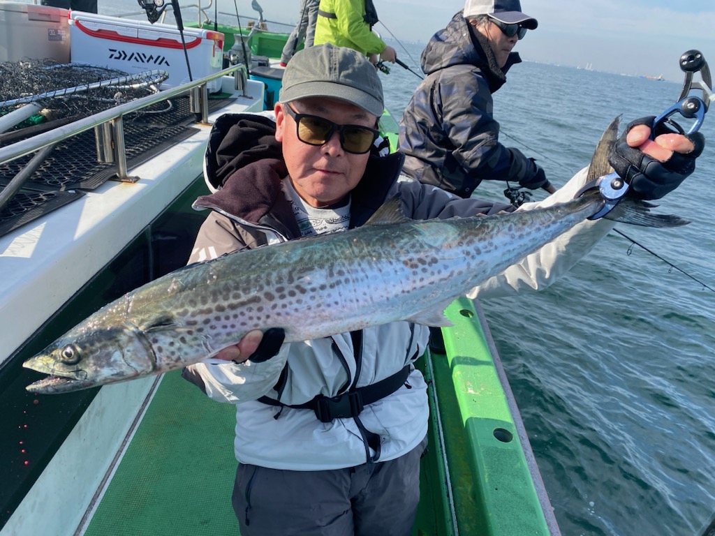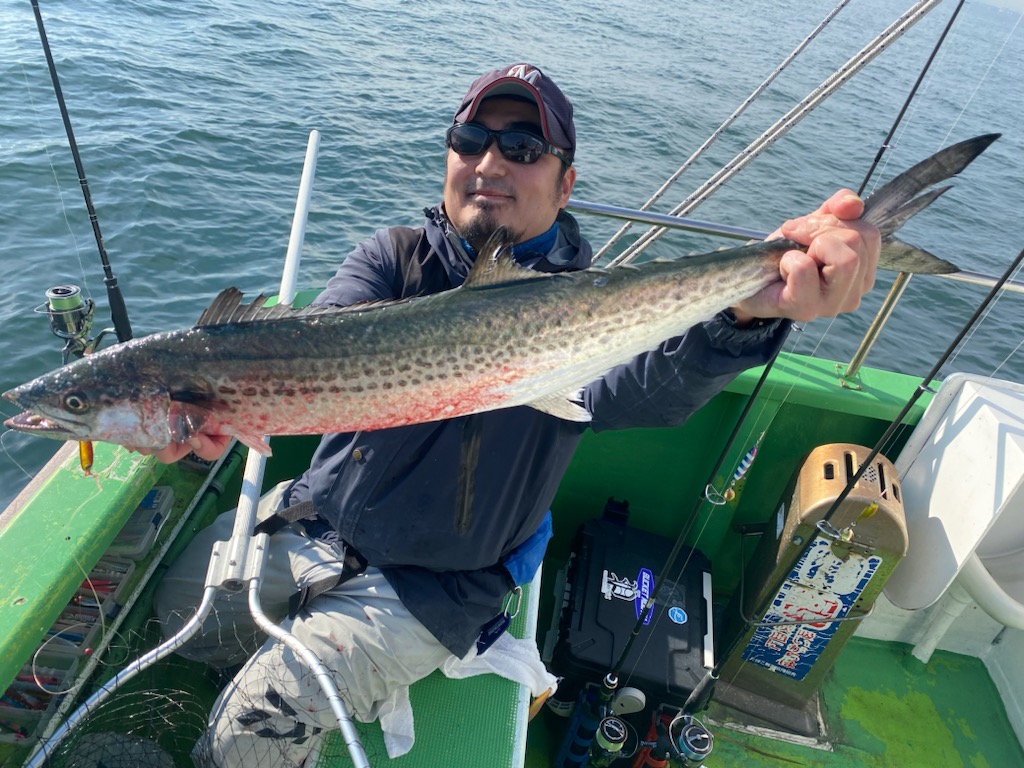 【サワラ船】 サワラ 大きさ 75~91㎝ 数 0~2匹(船中6匹) 他 タチウオ・ワラサ・イナダ 竿頭 港区 向井 昭広さん 今日も湾奥のポイントから捜索しながら南下。鳥山やベイト反応もなかなか見当たらず木更津方面まで南下するも、厳しい状態・・。何回かキャストを繰り返すもアタリの出ないまま13時とかなりマズい感じ・・。するとようやく明確なアタリが出せ待ちに待ったサワラが浮上!その後は反応もまとまり始め、サワラにワラサにイナダと短時間でしたがバタバタっと連発してHIT!ただ長続きせず終了となってしまいました・・。