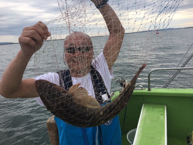 今日は海堡周りからスタート。下げ潮も流れており、順調にアタリが!水深8~20mほどと幅広く流し込み、流し変えるたびに順調にGETしていきました!60.5cmとランカー級も浮上!50cm級も多く、パワフルな引きを堪能できましたが、バラシやスッポ抜けも・・。今日は5名で船中17匹GETも、中にはアタリ14回で2匹のみとマゴチに優しい方もいらっしゃいました・・・。