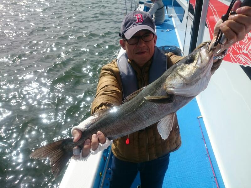 朝方はシーバース周辺からスタート。下げ潮も効いており、反応にのせればポツポツと順調にHIT!アタリがひと段落したところで、木更津沖に鳥山の捜索に向かいましたが、鳥も少なく反応もショボ目・・。結局、朝一のシーバース周辺でじっくり粘り上げ潮の効くのを待ちましたが、活性は高まらず終了となりました。