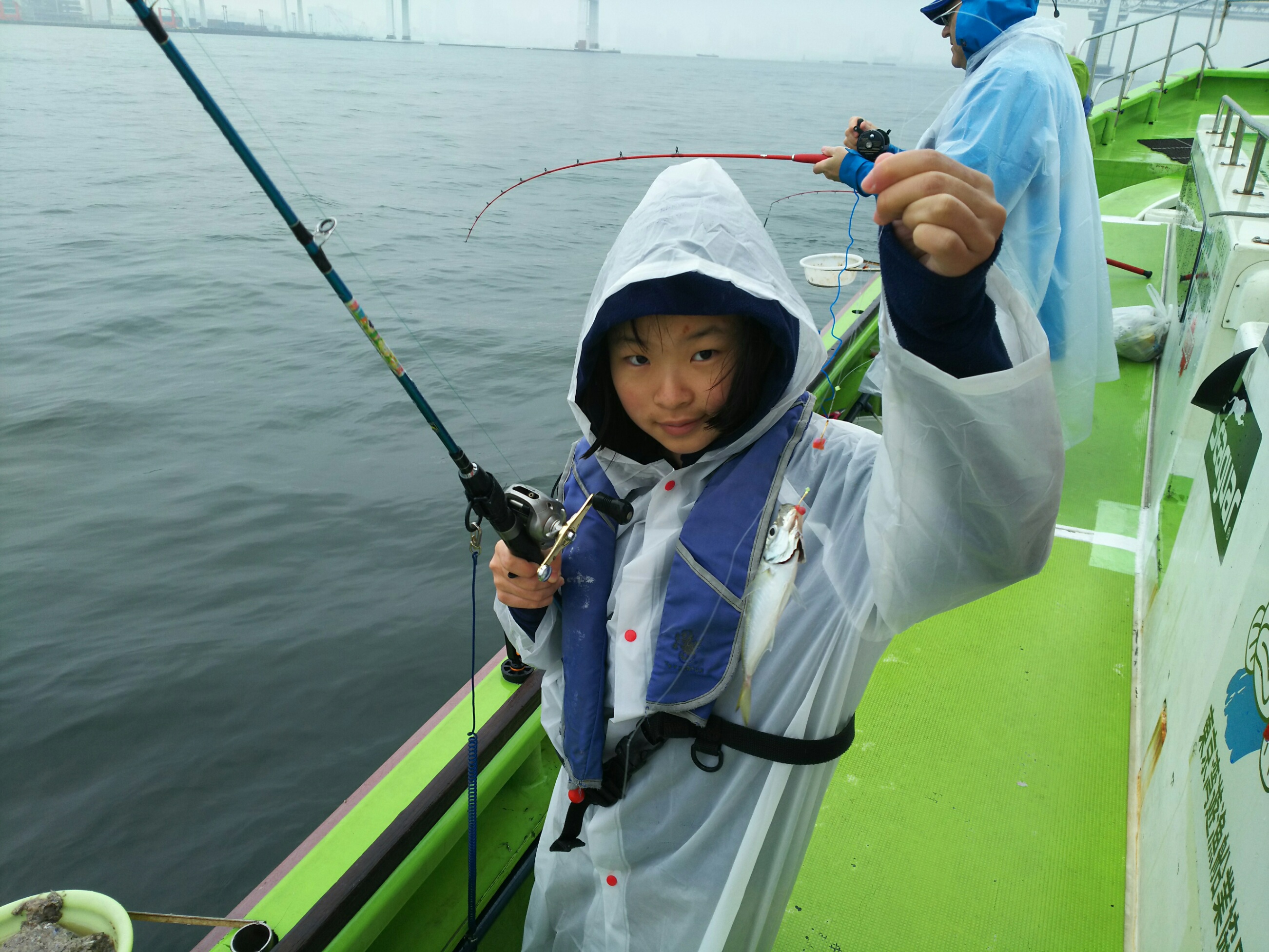 朝方はちょっと雨が残っておりましたが、風は北寄りに変わっており、海上はベタ凪!水深20mほどに反応もバッチリと出ており、ポツポツと好調な感じで続きました!イシモチも多くまじり、初めてアジ釣りをなさる方も多くご乗船でしたが、クーラーの中も賑やかになりました!
