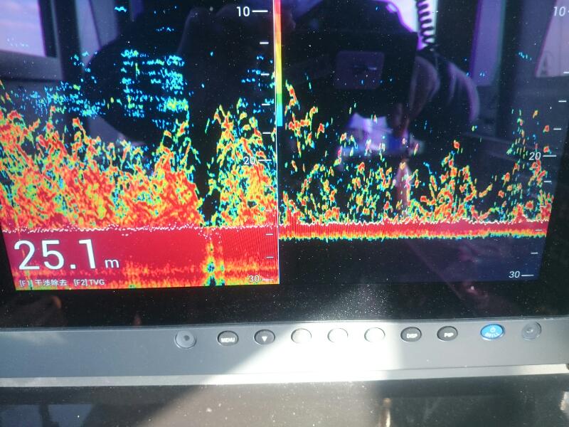 木更津沖と扇島沖に分かれて捜索するも、どこも反応はバッチリと出ている割には活性は低めなのか、アタリが遠い感じ・・。チップするだけのアタリが多いようで、慣れている方々も手こずっている様でした。上げ潮の時間帯になると徐々に活性もUP!時間帯によっては連発してHITする場面もあり好調に追うようになってくれました!
