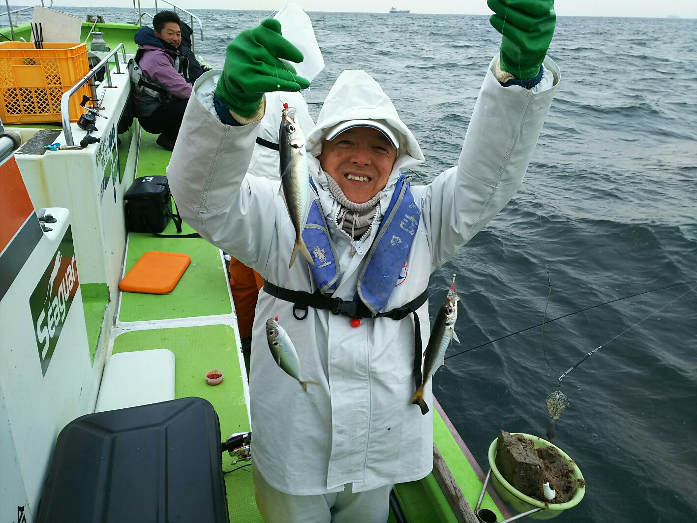 船内空いている場合や四隅にお座りの方は、アジ竿と2本出しても構いませんが、1本で集中したほうが間違いないでしょう!