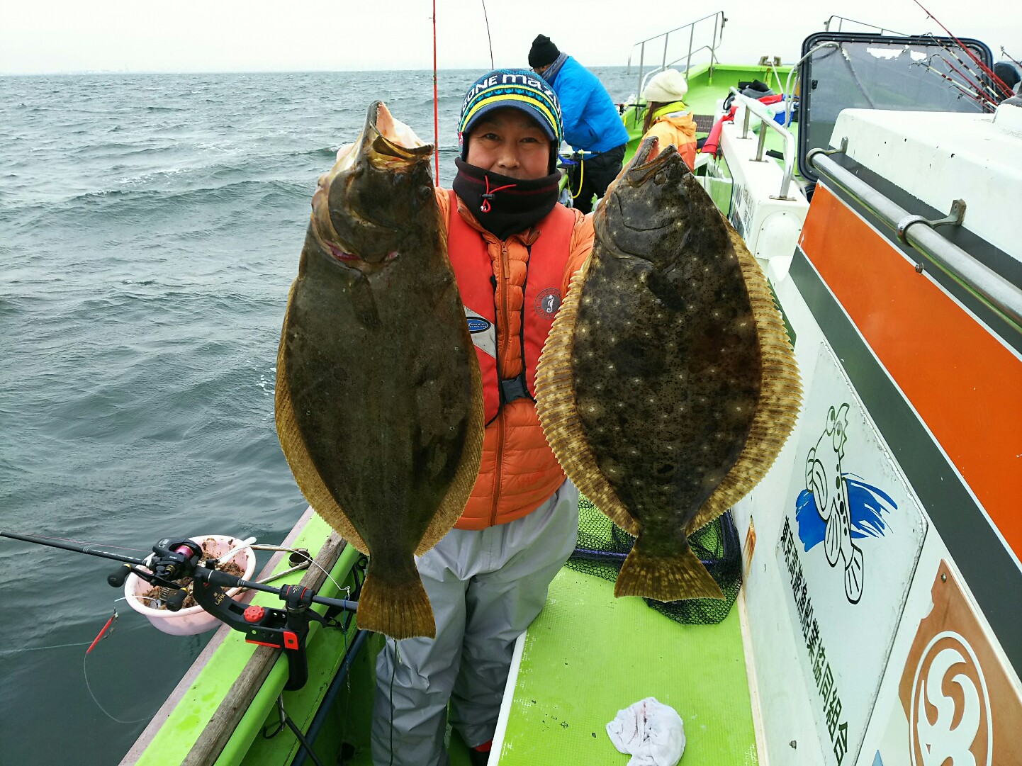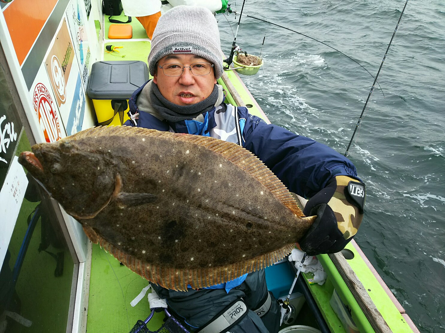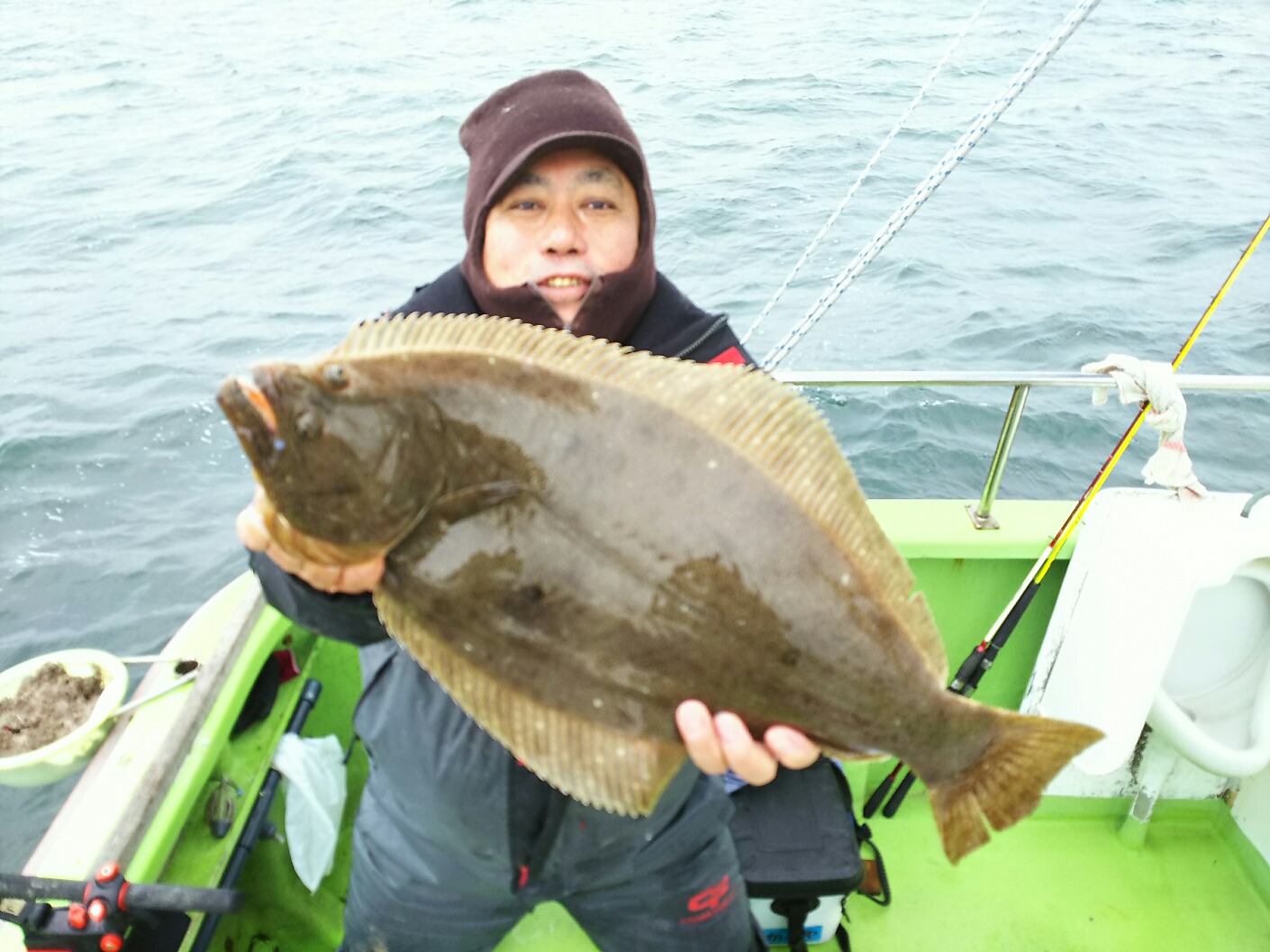 ここ最近、ヒラメ事件が多発中なので、途中で仕掛けをチェンジする方も!アタリもポツポツと出せ、浮上するたびに歓声が!船内で8名ほど狙い、帰りまでに全体で10回ほどアタリがあり5匹GET!最大は3kg超の肉厚なヤツ!