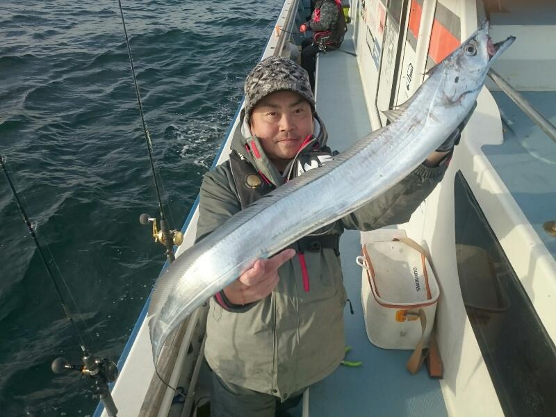タチウオ船は今日も走水沖からスタート。反応は所々に出ており、ポツポツと地味ながらHIT。サイズも良型そろいで、最大は121cm!もうちょい活性もUPしてくれればよかったのですが、次第に潮がゆるくなってくると反応も固まって真っ赤に・・。こうなると餌にはかろうじてアタリは出すようですが、ジグには反応が悪くなり辛い時間帯に・・。1時間ほど粘りましたが、好転する兆しもないため本牧沖まで北上することに。しかし、いい群れになかなかハマれず、こちらでは数匹GETに終わりました・・。