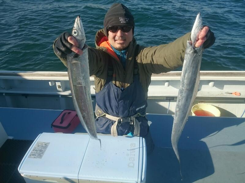 タチウオ船は走水沖からスタートしました。朝のうちは反応も海底から10mほど立ち上がっており、ジグを落とすとポツポツと好調にHIT!活性の高めなのは朝のうちだけでしたが、その後も反応にのっていられれば、なんとか型を出せる感じでした。指3本くらいのサイズも混じりましたが、メーターUPのドラゴン級も浮上!初挑戦の方も皆さんGETできました!