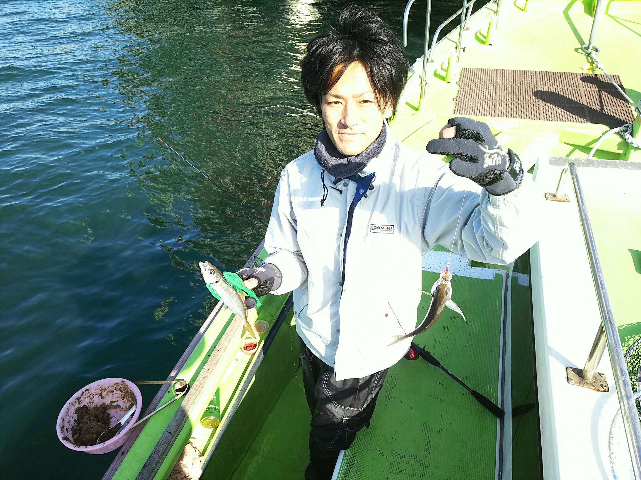 今日は半数の方が美味しい寒ビラメ狙い!活きのいいアジを泳がせて狙っていらっしゃいましたが、それらしいアタリもなく、静かなまま帰航時間となってしまいました・・・。