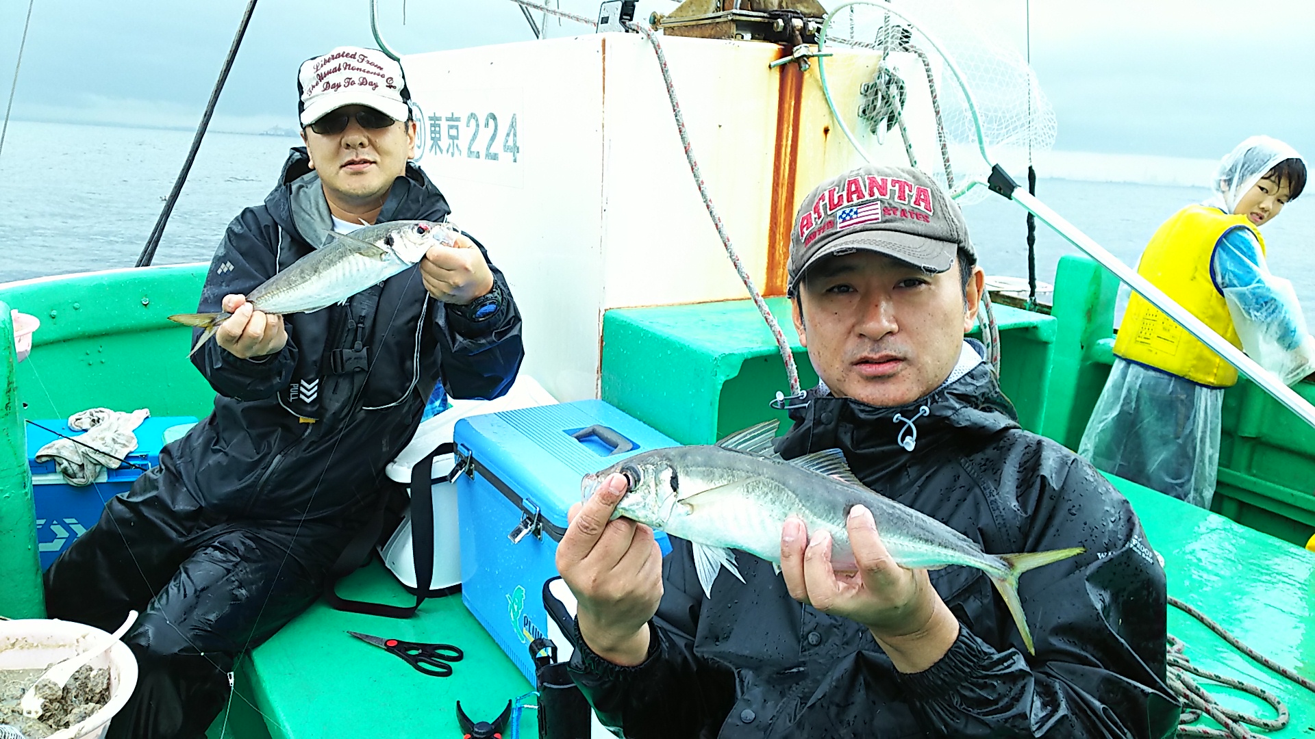 マアジ船は今日も2隻で出船!出船を遅らせてともに8時過ぎに出発。風は北寄りに変わったのですが、南西方向のうねりで非常に海上は悪いコンディション・・。何とか風影のポイントに着き釣りを開始。30cmオーバーの中サバでしたが活発にHIT!ポイントを移動すると、39cmの巨大なマアジ!その後も連発し、同じくらいのサイズが5匹浮上!後半はベタ凪になり木更津沖に。こちらでは20cm級のアジでしたが入れ食いに!活発なアタリっぷりは帰り際まで続いてくれました!