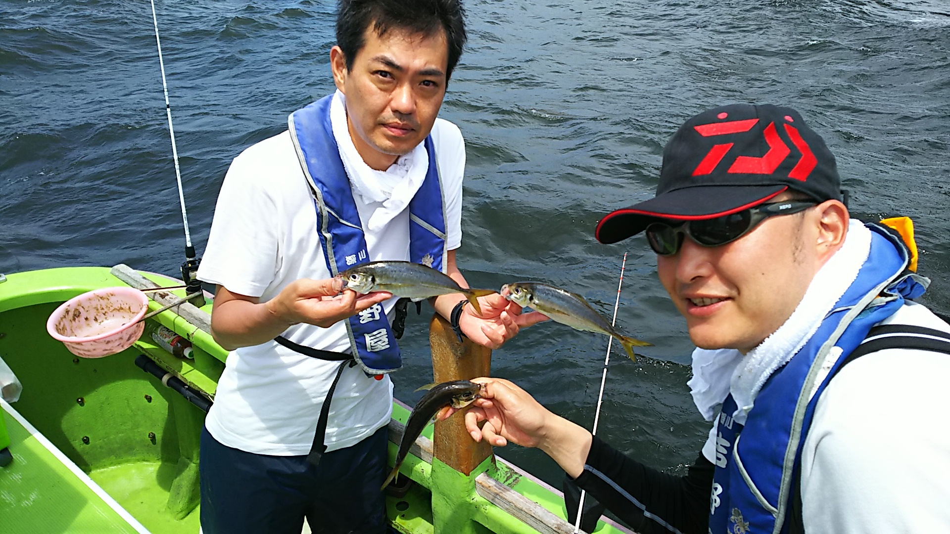 天気 晴れ 水温 24.0℃ うす濁り 【マアジ船】 マアジ 大きさ 20~28cm 数 2~22匹 竿頭 茂原市 片岡 文也さん アジ船は近場のポイントから。反応はあるのですが、アタリはちょっと渋め。早々に諦め富岡沖まで南下。こちらも反応バッチリもなかなかアタリは遠め・・。移動を繰り返してもどこも同じよう・・。上げ潮に変わったところで、朝一のポイントに。反応も盛り上がっておりポツポツと好調にHIT!ダブルも多発し、後半は活発なアタリになってくれました!