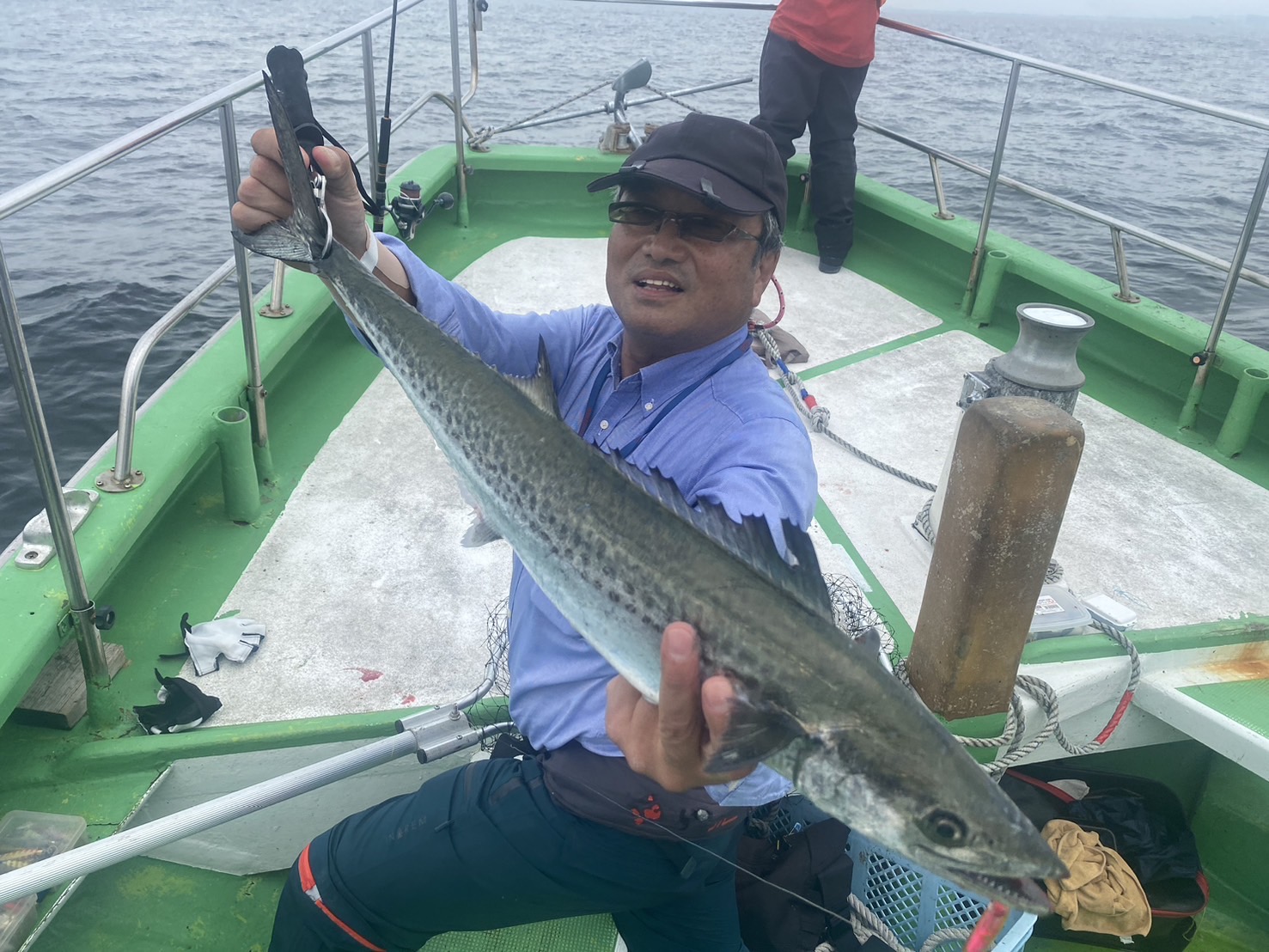 【サワラ船】 サワラ 大きさ 40~80㎝ 数 0~6匹(船中17匹) 他に イナダ・タチウオ 竿頭 川口市 大平 正義さん 今日も上手のポイントからまわりましたが、ベイト反応がろくに見つからず太刀魚が釣れただけでウロウロする事3時間。サワラを見ることが出来ず海中の深めに行ってみると、ようやくベイト反応を発見しスグにキャストするも空振りでしたが、何度か反応を変えながらやっているとイナダがポツンポツンとヒットするとサワラも船内に!その周辺を流しポツリポツリとサゴシやサワラをゲット出来ました。