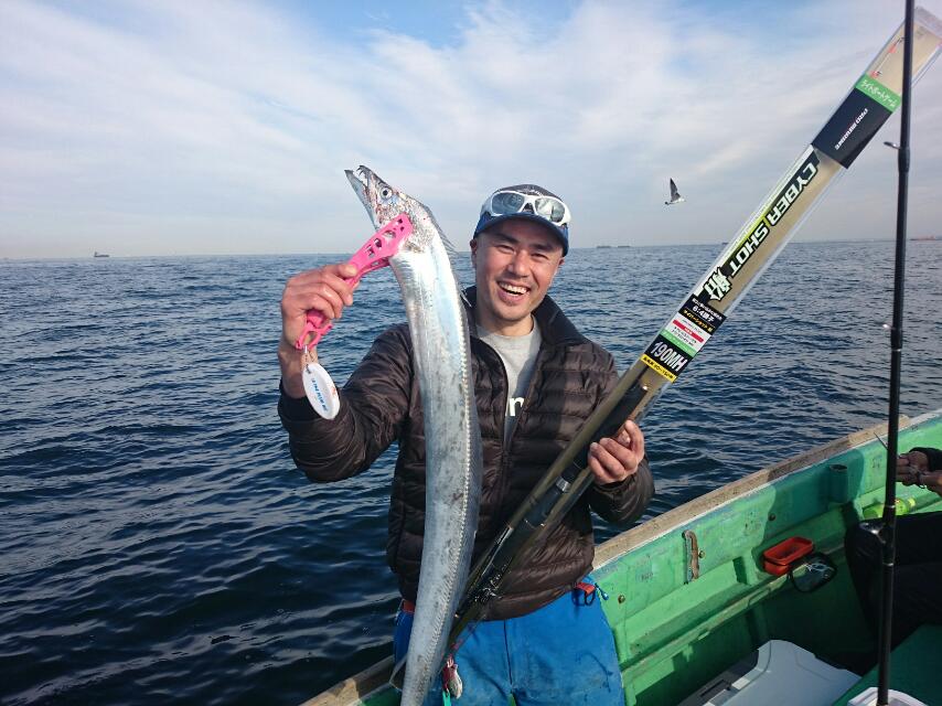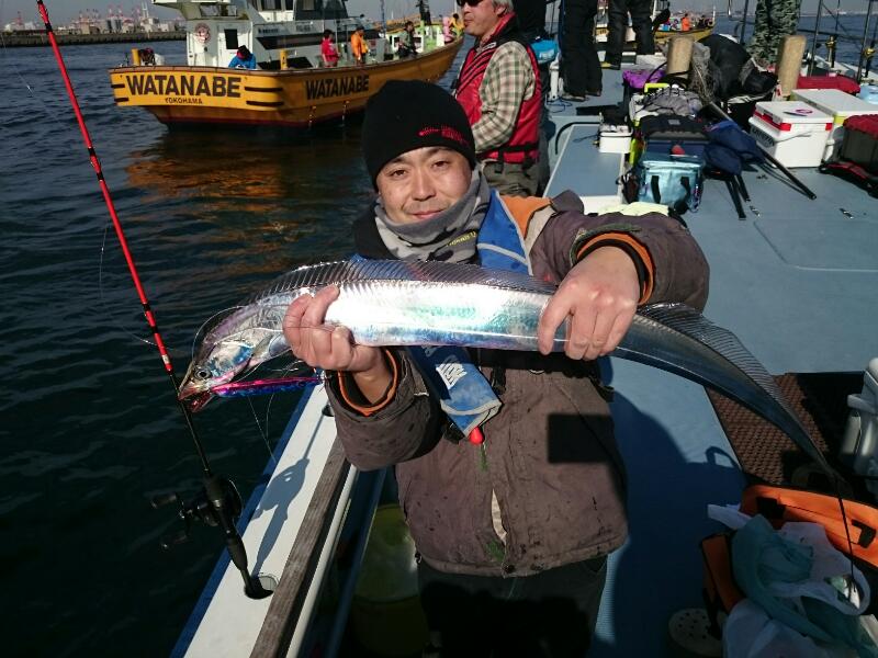 タチウオ船は2隻で本牧沖からスタートしました!朝から活発な反応が出ており、ポツポツと好調な滑り出し!サイズも良型そろいで指4~6本クラスが主体でした!活発な時間帯は2時間ほどでしたが、今日の反応は固まることなく広範囲に出ていたので、反応に乗っていられればポツポツと順調にHITしてくれました!水深も40mとジギングには優しく、新年早々楽しめた一日でした!!