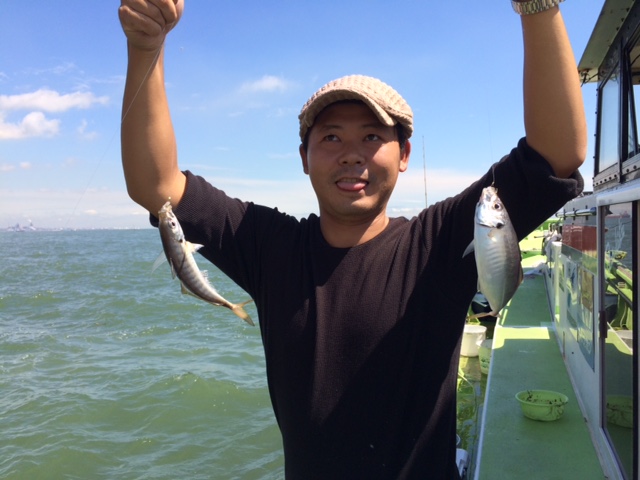 今日は朝から良い天気!水色はコーヒー牛乳みたいな色で上流から流れてきたゴミも多く、いつもよりゆっくりと航行してポイントに向かいました。前半はここ数日の豪雨で水気しているせいなのか、アタリも非常に遠く型を見ただけでした・・。何箇所かポイントを変え、ようやく高めの反応に遭遇!コマセを撒くと食いっぷりも一気に急上昇!後半は活発なアタリを楽しめました!!