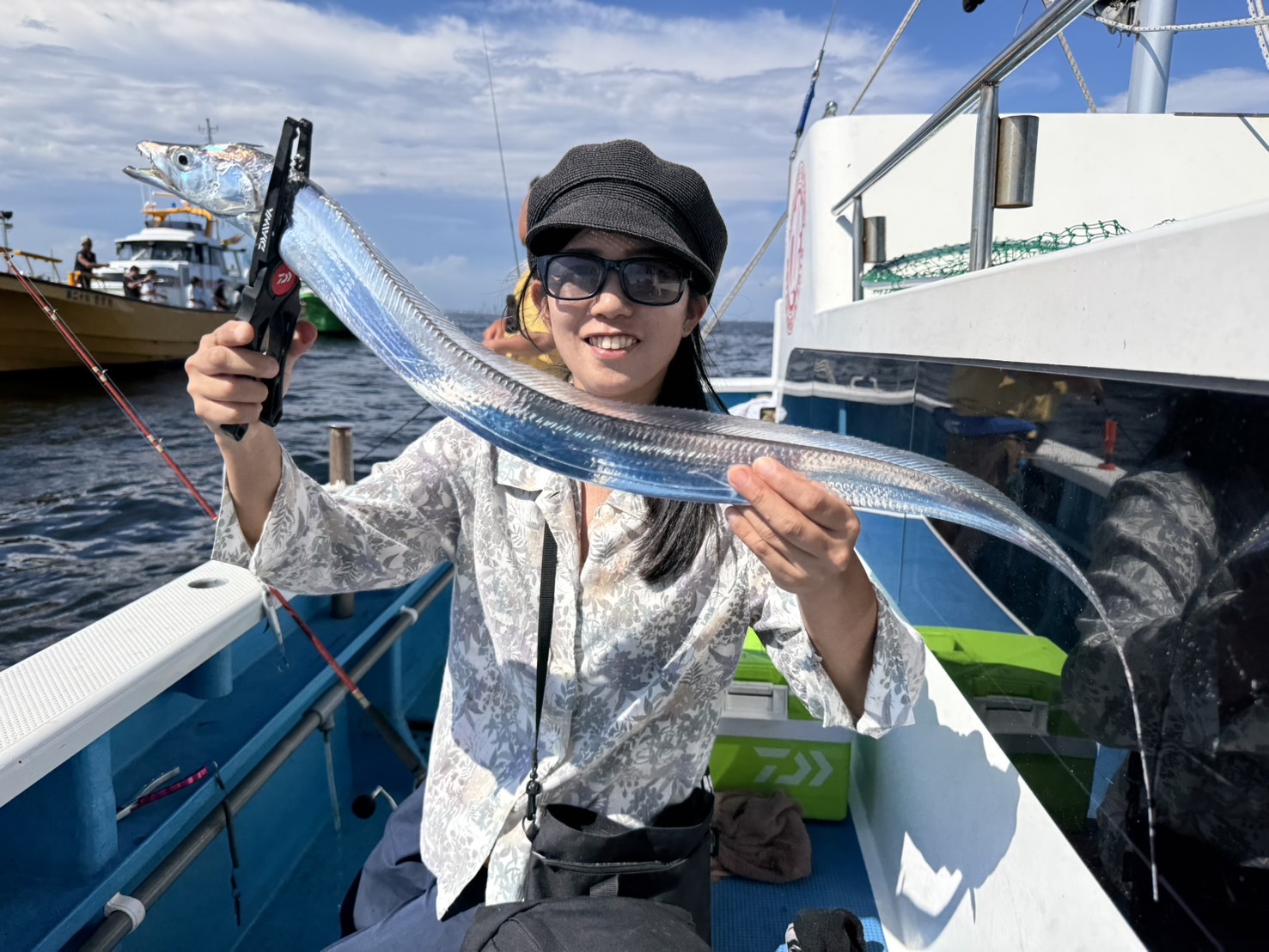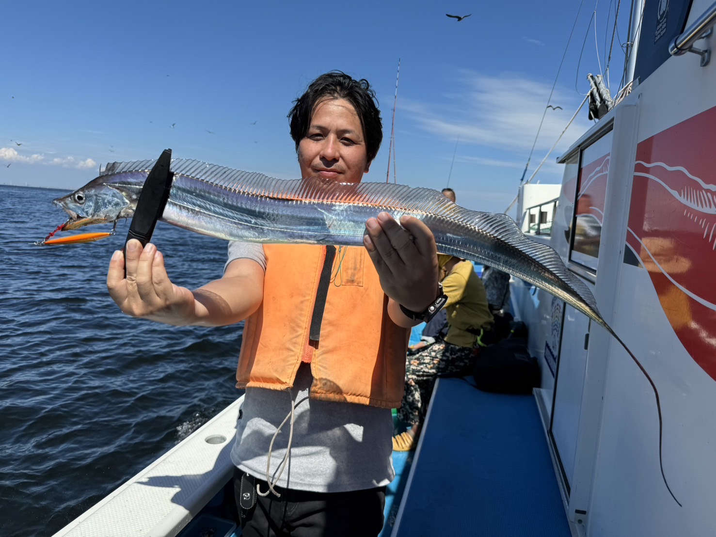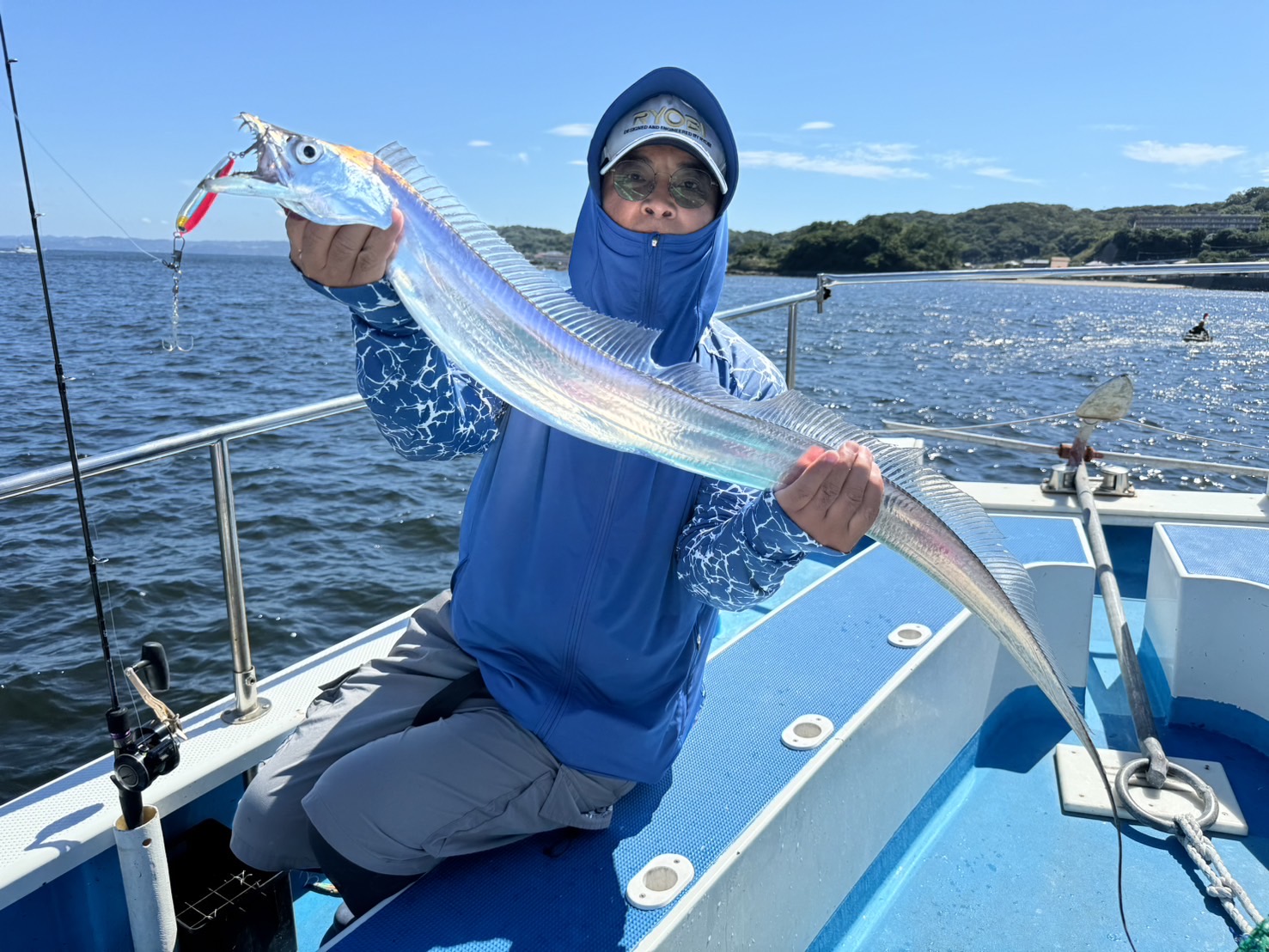 天気 くもり 水温28.2℃ うす濁り 【タチウオ船】 タチウオ 大きさ 65~115㎝ 数 5~50匹 竿頭 足立区 伊東 健一さん 今日は浅場からスタート!反応も広くあり久しぶりにアタリ良く好調でした。下げ潮のうちは浅場で粘り後半は走水沖へと移動。こちらはかなりテクニカルでしたが当たれば良型多く、サイズアップできました!
