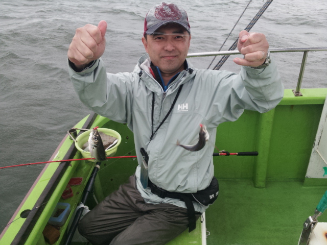 久しぶりの夕まづめアジ船でした!生憎の雨模様&北東の風で肌寒い日和でしたが、連日の雨のおかげで濁り潮が入り、アジも高活性!!反応も広範囲に出ており、開始早々から良い食いっぷりでした!サイズも中型でそろってくれ、ダブル・トリプルもありクーラーの中もいい感じに!