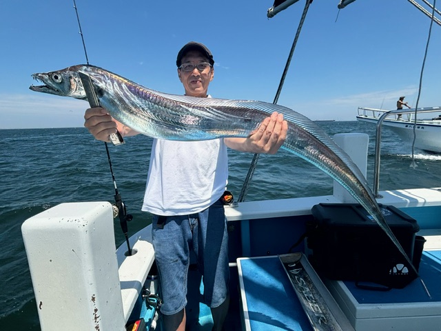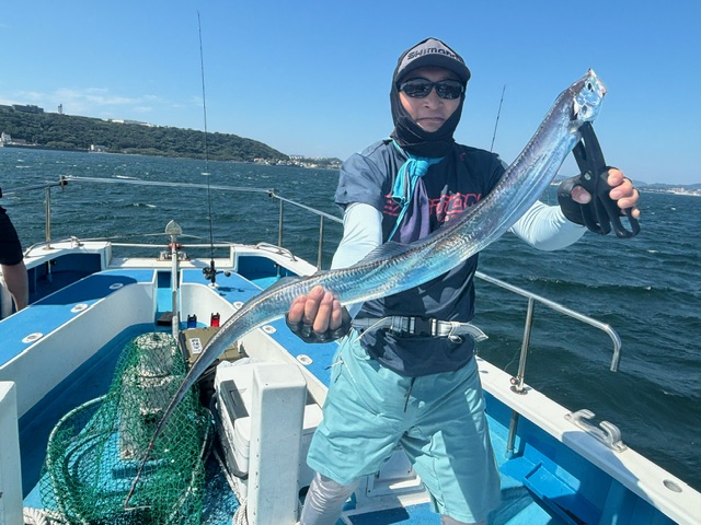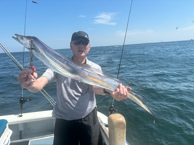 天気 晴れ 水温28.8℃ うす濁り 【タチウオ船】 タチウオ 大きさ 60~135㎝ 数 0~19匹 竿頭 越谷市 泉 嘉徳さん 本日も3隻で出船しました。走水沖から猿島沖で各々スタート。反応は広範囲に出ており、多少テクニカルながらなんとか順調にHITしてくれました!サイズも良型含み、135㎝のドラゴンも浮上!前半は好調な感じも、下げ潮が流れてくると潮も悪くなり、反応も細切れ気味に・・。後半は浅場のポイントを狙いちょっと追加し帰航しました。