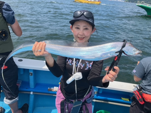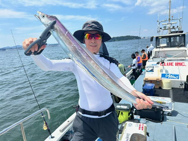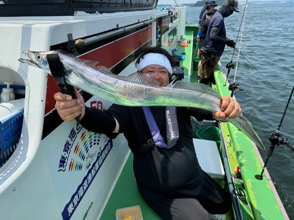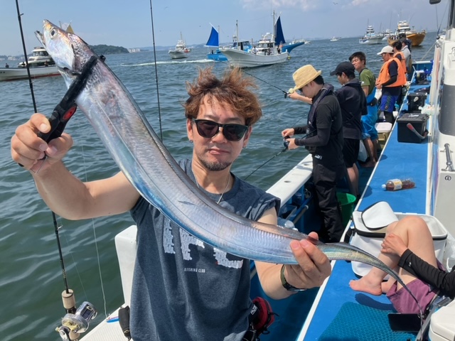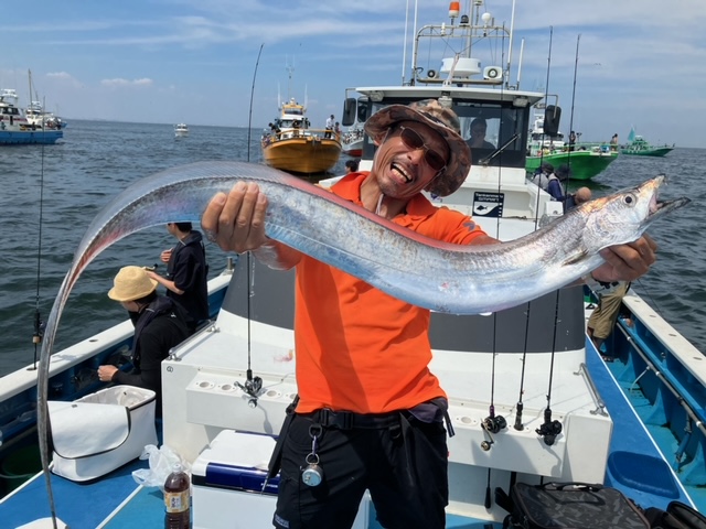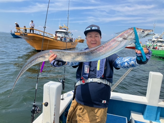 天気 晴れ 水温29.8℃ うす濁り 【タチウオ船】 タチウオ 大きさ 60~135㎝ 数 1~22匹 竿頭 武蔵野市 斉藤 雅幸さん 本日も3隻で出船しました。3隻ともに走水沖に直行。朝イチは活性も高めな感じでジグにも反応良くポツポツと好調に!ただ、10時を過ぎるとトーンダウン・・。その後は走水から猿島沖を行ったり来たり、ちょっとでも活性の高い群れを探しましたが、どこも同じようで地味にポツポツと。どちらもメーター前後の良型も多く、帰り際には135㎝のドラゴンも浮上!船内も盛り上がりました! ジグは120ℊ前後の物を各種・各色お持ちになってください!