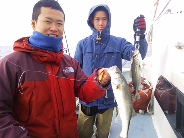 天気 雲→晴 水温 14.0℃ うす濁り 【シーバス船】 シーバス 大きさ 33~53cm 数 17~30匹 竿頭 江戸川区 村山 亮徳さん 今日も活発な群れに遭遇できました!水深15m程のポイントに反応もバッチリと出ており、キャスティングでもジギングでも同じようにHIT!ただ、40cm級が元気すぎて60cmUPの魚影は見ることができませんでした・・。