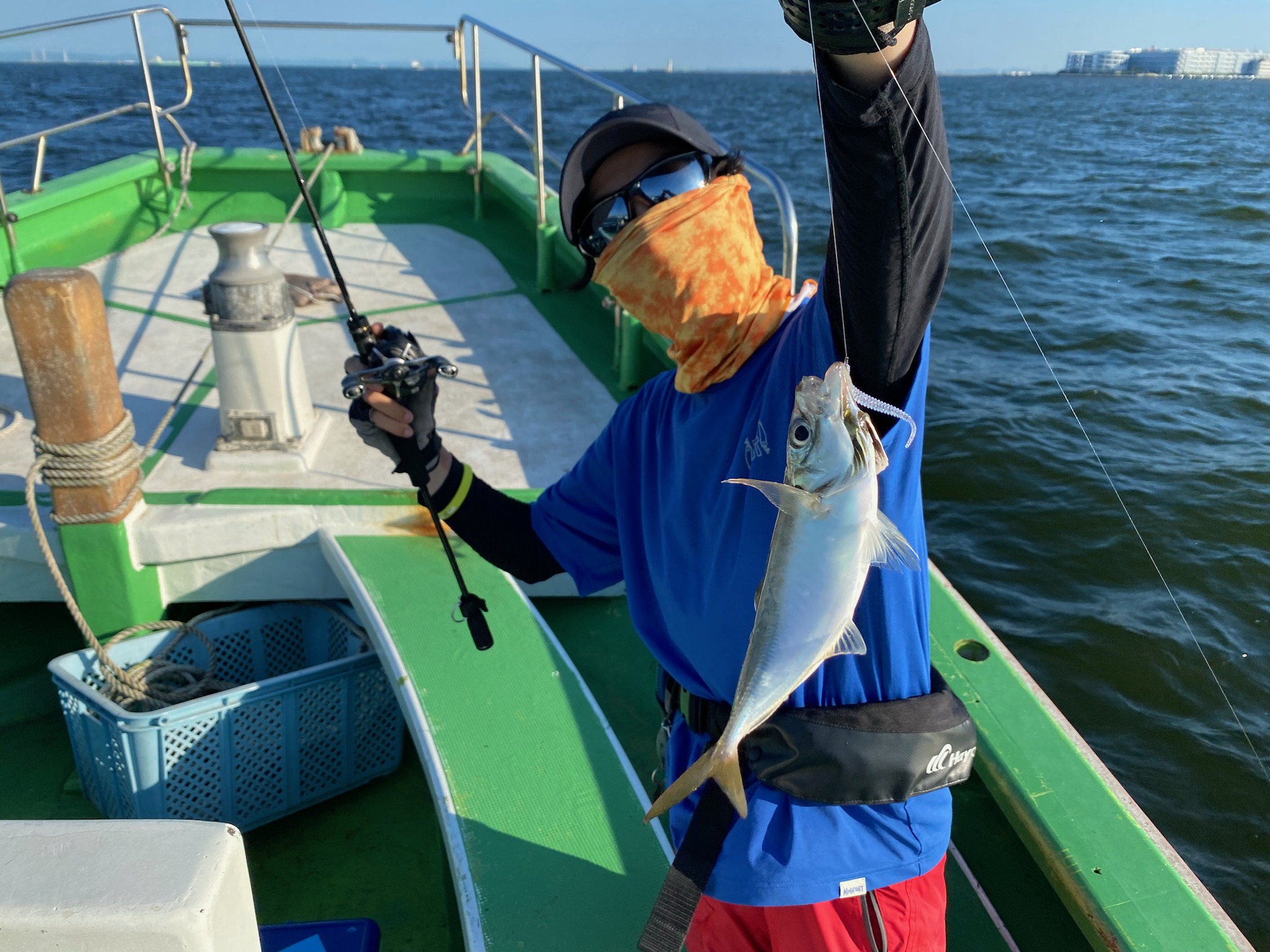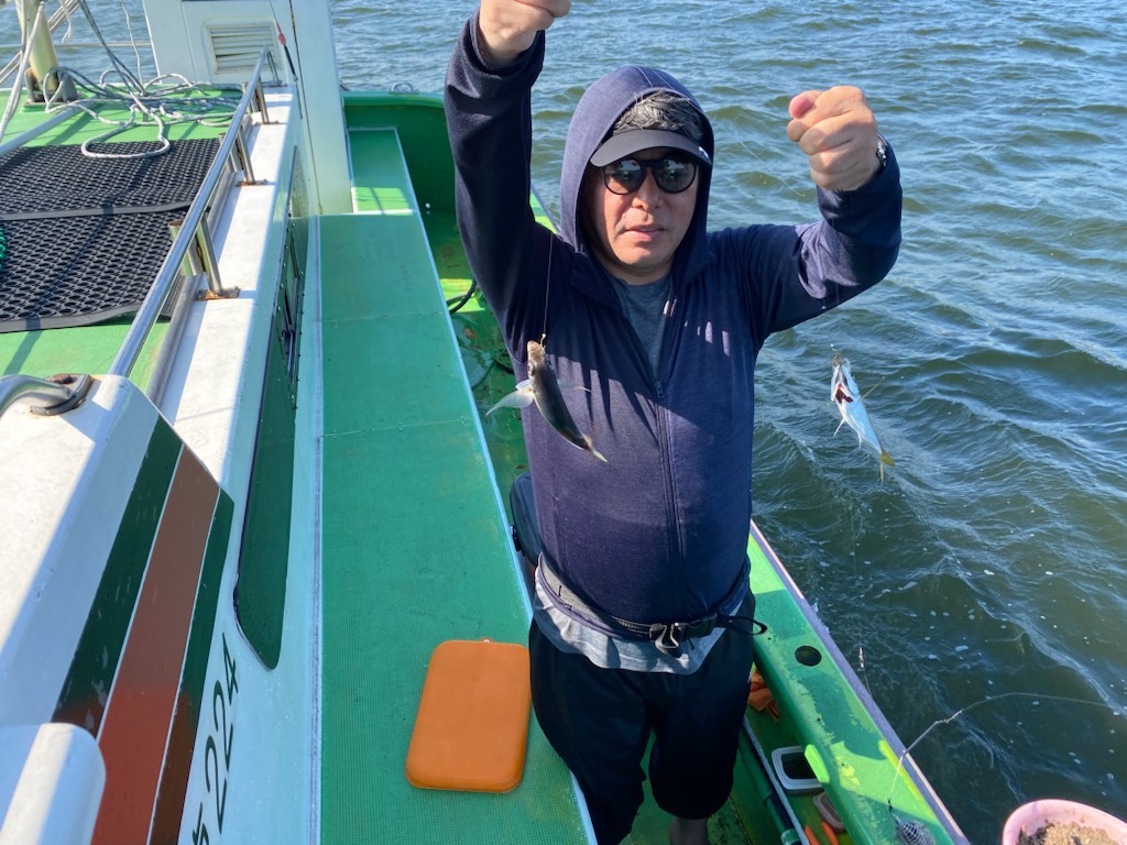 天気 晴れ 水温29.5℃ 濁り 【夕まづめアジ船】 マアジ 大きさ 16~26cm 数 5~68匹 竿頭 江東区 成田 純一さん 夕まずめアジ船は横浜沖に向かいました。10ⅿほどのポイントで到着早々から活発な群れに!コマセが効く前に針掛かりしてくる感じで、怒涛の入れ食いモードに!1時間ちょっと大忙しな感じでしたが、徐々に落ち着いてきて・・。夕まづめの時間帯はポツポツ程度のアタリ具合でした。