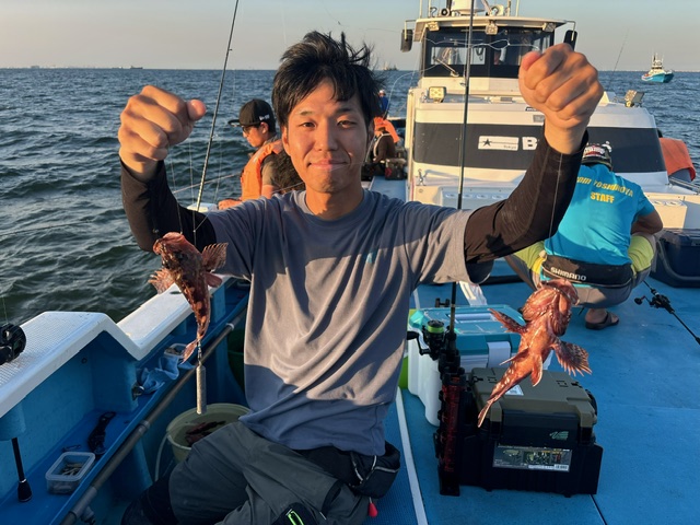【カサゴ船】 カサゴ 大きさ 15~27㎝ 数 3~47匹 竿頭 江東区 佐藤 将之さん いつものポイントは先発の僚船によると『型を出さない・・』との事なので、久しぶりに木更津沖を狙いました。10ⅿほどのポイントで早々から順調なアタリ!20㎝を超える良型もポツポツと浮上し、夕まづめの時間帯になると更に活発に!慣れない方も根掛を回避しながら順調にHIT!暗くなるとアタリも落ち着いてきましたが、帰り際まで良型主体で続いてくれました!