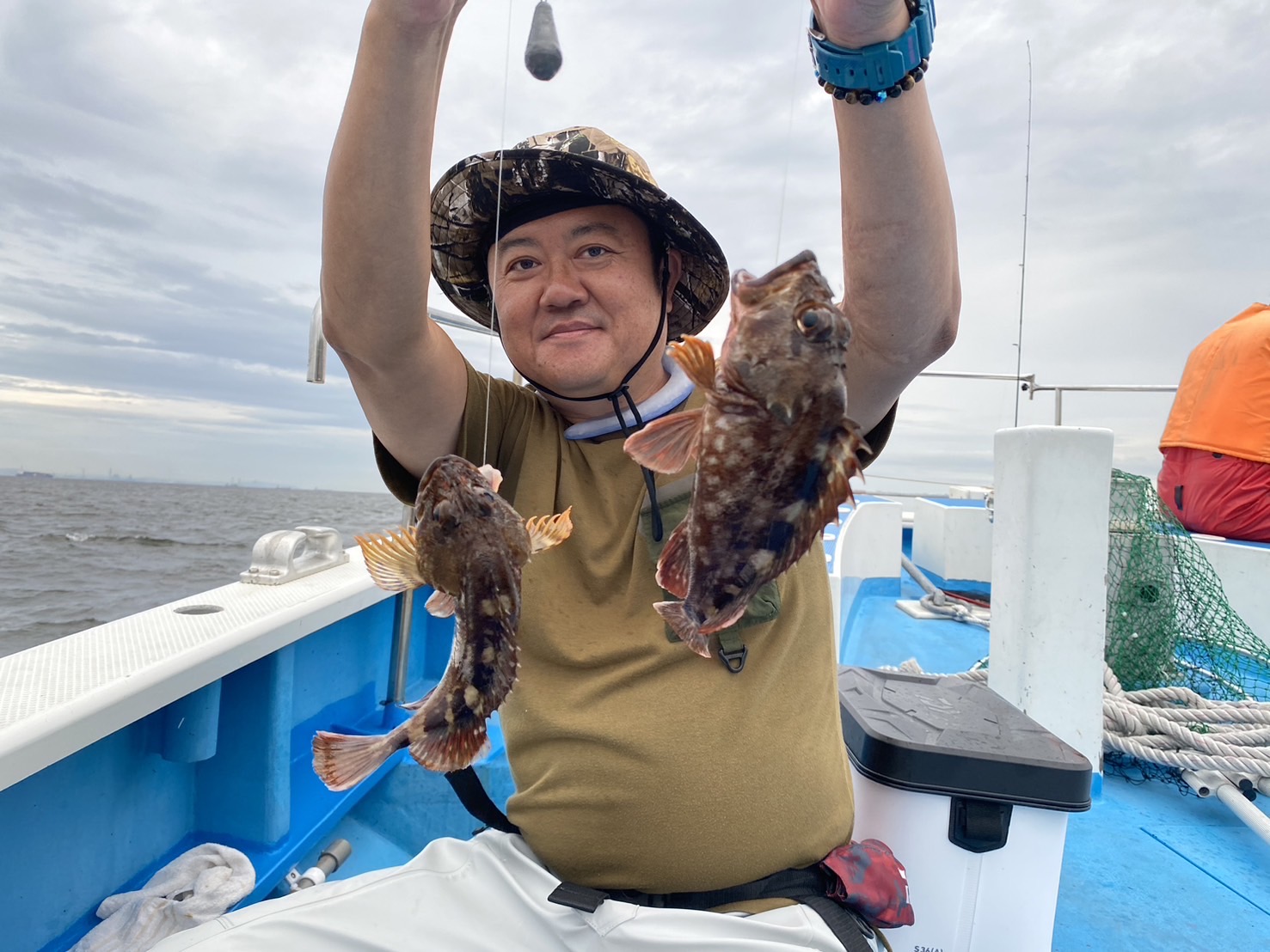 天気 くもり・雨 水温26.1℃ うす濁り 【カサゴ船】 カサゴ 大きさ 17~28㎝ 数 6~80匹 竿頭 中央区 藤井 信行 さん 羽田沖よりスタート!到着時はスロースタートでポツーンと間が空いてポツーンでしたが、まづめ時になると一気にヒートアップ!!ダブルも多く手慣れた方は手返し良くバリバリと釣っていました!サイズは大中が多く小ぶりは混じった程度と今季最高の釣れっぷりでした!
