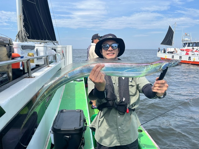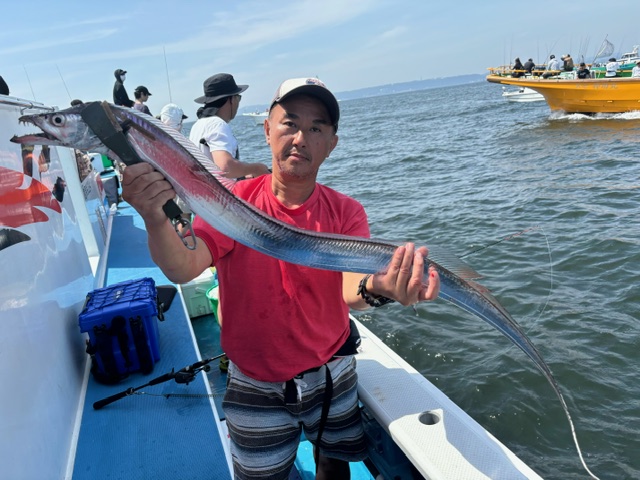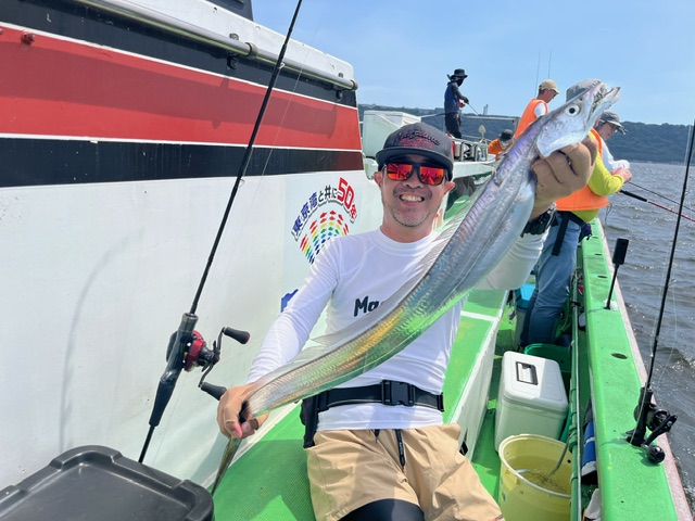 天気 晴れ 水温26.5℃ うす濁り 【タチウオ船】 タチウオ 大きさ 60~122㎝ 数 0~16匹 竿頭 江東区 小浜 健司さん タチウオ船は今日も3隻で出船しました。ともに海堡周辺からスタートするも、反応は確認できるのですが、やる気がないのかアタリは遠め・・。1隻が10mほどの浅場で反応を見つけるも、こちらも反応の割にはアタリも遠く・・。ここ最近の夏タチの高活性とは一気に変わりどこも苦戦気味・・。後半は走水沖に向かい、中層に浮かぶ反応を狙いましたが、こちらも活性低めでテクニカルな感じ・・。ただ、たまにメーター前後の良型もHIT!122㎝のドラゴンも浮上し、ちょっと盛り上がりました!