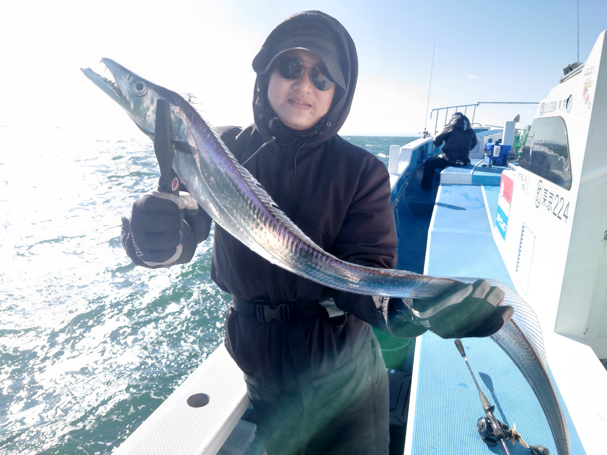 天気 晴れ 水温24.5℃ うす濁り 【タチウオ船】 タチウオ 大きさ 60~135㎝ 数 1~43匹 竿頭 江東区 小浜 健司さん 今日は3隻で出船しました。朝イチは僚船から連絡をもらい浅場に急行!10mほどの超浅場にタチウオの群れが!夏タチサイズ主体も入れ食い状態な感じでスタート!ジグは60gほどの軽めのヤツで小さいほど良かった感じでした!2時間ほど活発な食いっぷりを楽しんだ後で走水沖に移動。こちらはいつものように中層に浮かぶ反応を120gほどのジグで狙い。ポツポツと順調にHIT!メーター前後の良型もいい感じにまじり、各船でドラゴン級もGETできました!