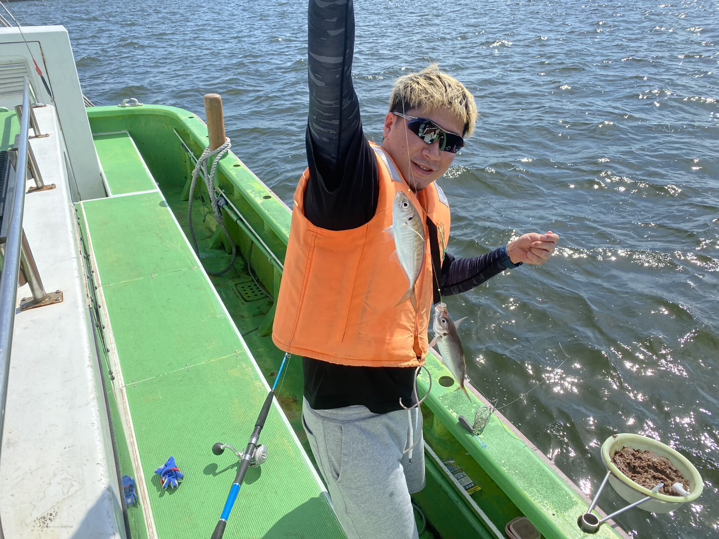 【マアジ船】 マアジ 大きさ 16~26㎝ 数 30~77匹 竿頭 豊島区 一条 航太さん 今日は東のポイントに向かいました。浅めの水深に反応がありコマセを撒いているとスグに高活性になり、貸し竿でチャレンジの方々もダブル掛けを連発!暑さで休み休みの感じでしたがそれでもクーラーは賑やかに。馴れた方は開始からバリバリモード!初めてチャレンジの方でもレクチャーをしっかりと聞いてくれたので、30〜40匹釣り上げもうお腹いっぱいですとの事で暑さもあり早めに撤収しました。