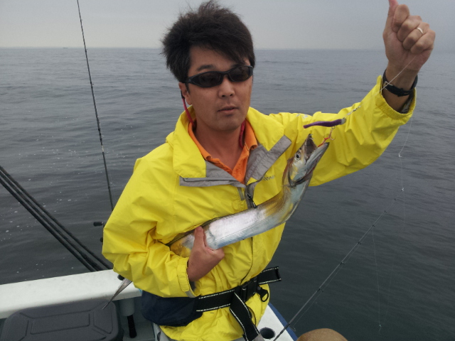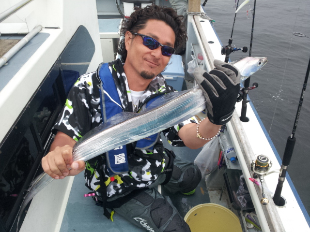 タチウオ船は大貫沖の浅場からスタート。反応もところどころに出ておりポツポツとHIT。でも次第に反応も消滅していき、深場の金谷沖に移動。50mとちょっと深めに反応が出ておりましたが、非常に渋く・・。サバの群れが入っていて群れも嫌がるように一気に下降・・。90mラインまで下がってしまいタチウオにヤル気が感じられず浅場に移動。消滅していた反応も復活していましたが、こちらもヤル気がなくたまにアタリが出せる程度でした・・。