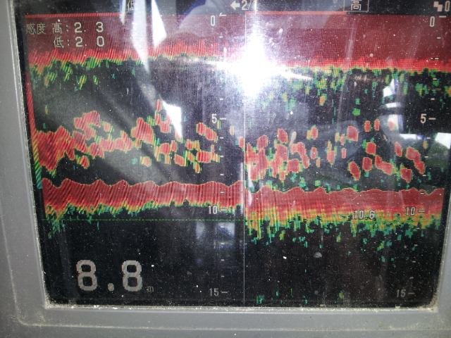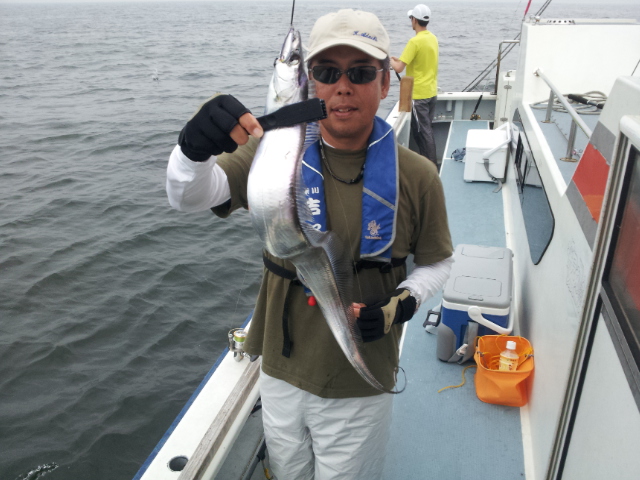 金谷沖を狙っていた先発組の僚船より「反応あるけど、あたらない」との事で大貫沖の浅場からスタート。こちらも反応は見られるも、なかなかHITせず・・。スピンテールやワインドなどのワーム系には何とか反応するようで、キャスティングでガンガン攻めました。キャストのたびにあったようでしたが、簡単にはかかってくれません・・。水深も10m程ですのでタチウオの他にイナダ・サバ・ホウボウ・マゴチ・シーバスなどなど外道は多彩!