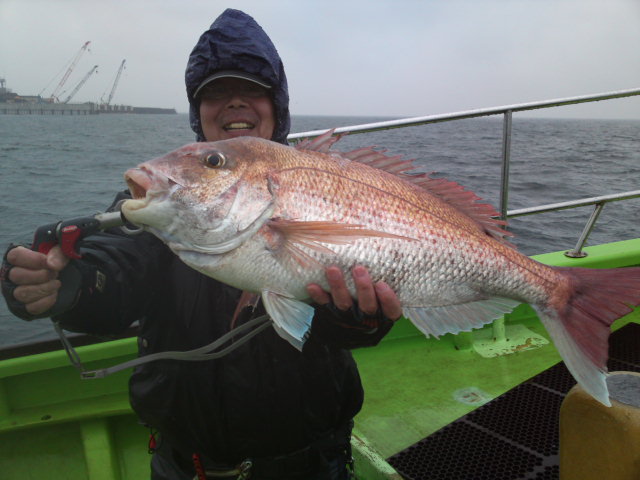 でも、シーバスは超高活性!!ジギングのポイントで大鳥山が発生!サイズは50cm級主体で、ジグが海底につかない状態に!そんな中、トップの浅沼さんの竿にいきなりデカい真鯛がHIT!玉網に入ったのは5.4kgの綺麗な魚体!こんな湾奥にもマダイがいるんだな!っと感動した一日でした!