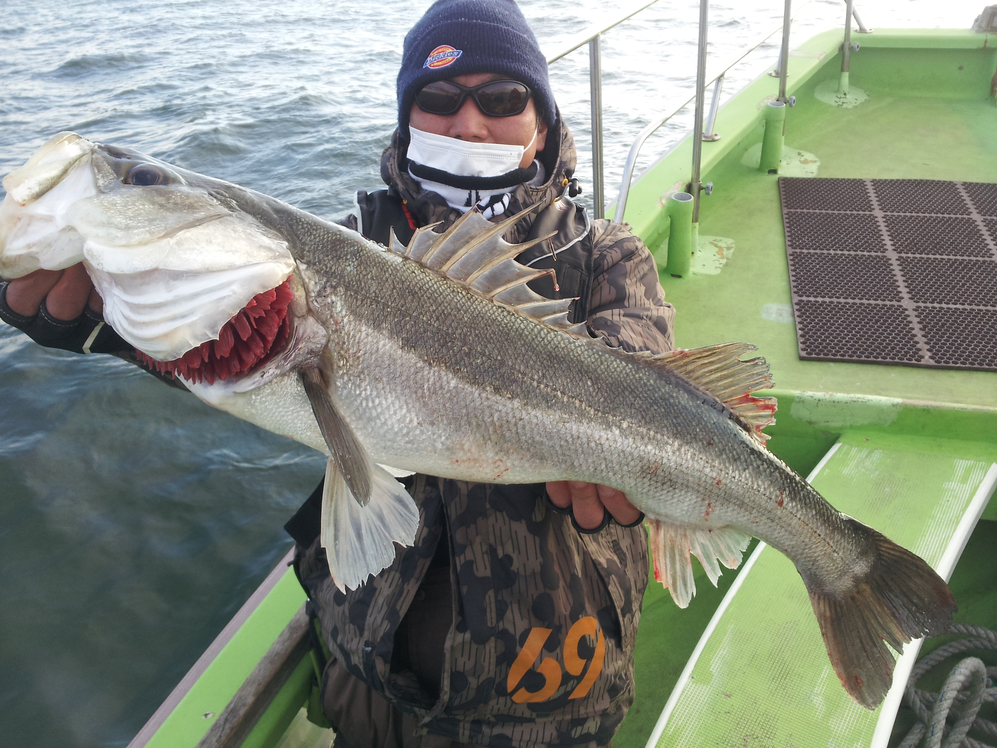朝から上手くハマれず、2隻で東に西にと移動の繰り返し。深場のポイントにも反応もあり、潮も流れているけれどアタリは遠く・・・。浅場を捜索していた7号船は10mほどのポイントで小規模ながら鳥山に遭遇!ほとんどが60cmUPで、一番は80cm!!キャストで一時は活発になるものの、ほとんどの方がジグしかなく・・。スピンテールやバイブなどキャストできた方は面白いようにHITさせていました。今年は浅場にベイトが多いのか、極寒時でもキャスティングの有効な日もあります。どんな状況にも対応できるように、キャスティングタックルもお忘れなく!
