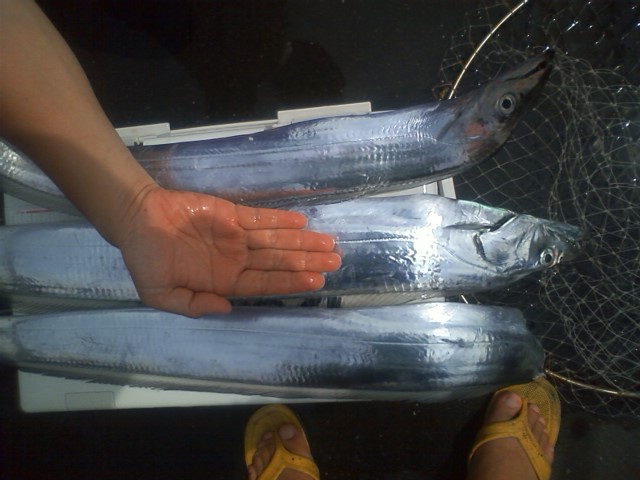 潮がトロトロの一日のせいか、いつものサバポイントに反応は出ているものの、アタリが出せず・・・。アジも同じで反応の割には食い渋り・・。サバはアジ釣りの時に混じってきた程度でした。